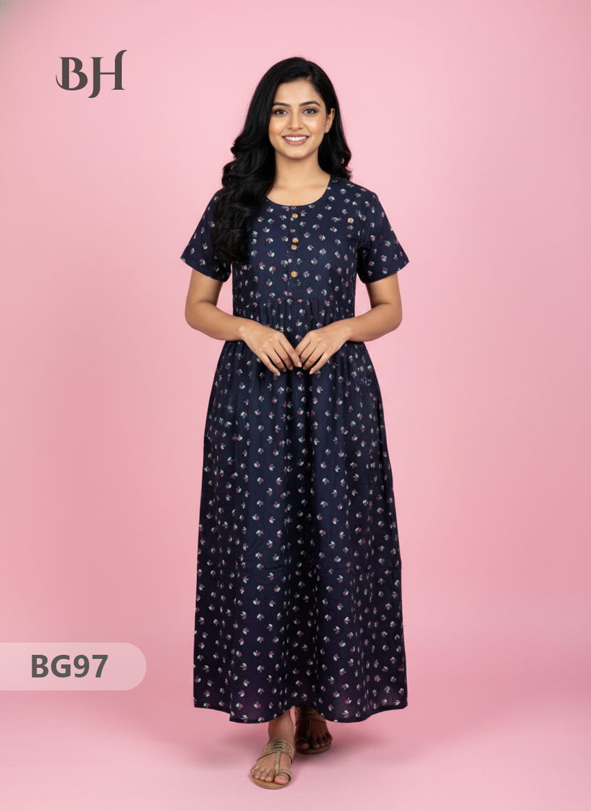 100% Cotton (Soft) Free Size → up to Bust 44" (2XL) Height (Dress Length): 53" Easy Care • Machine Washable
