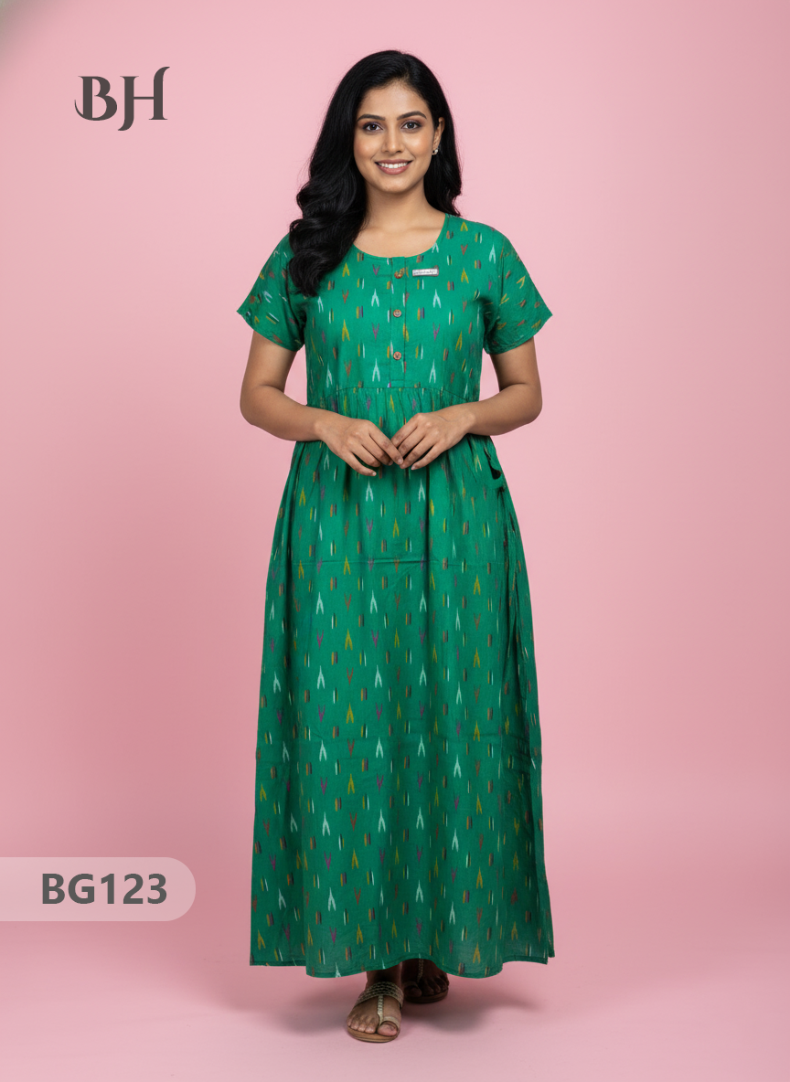 100% Cotton (Soft) Free Size → up to Bust 44" (2XL) Height (Dress Length): 53" Easy Care • Machine Washable