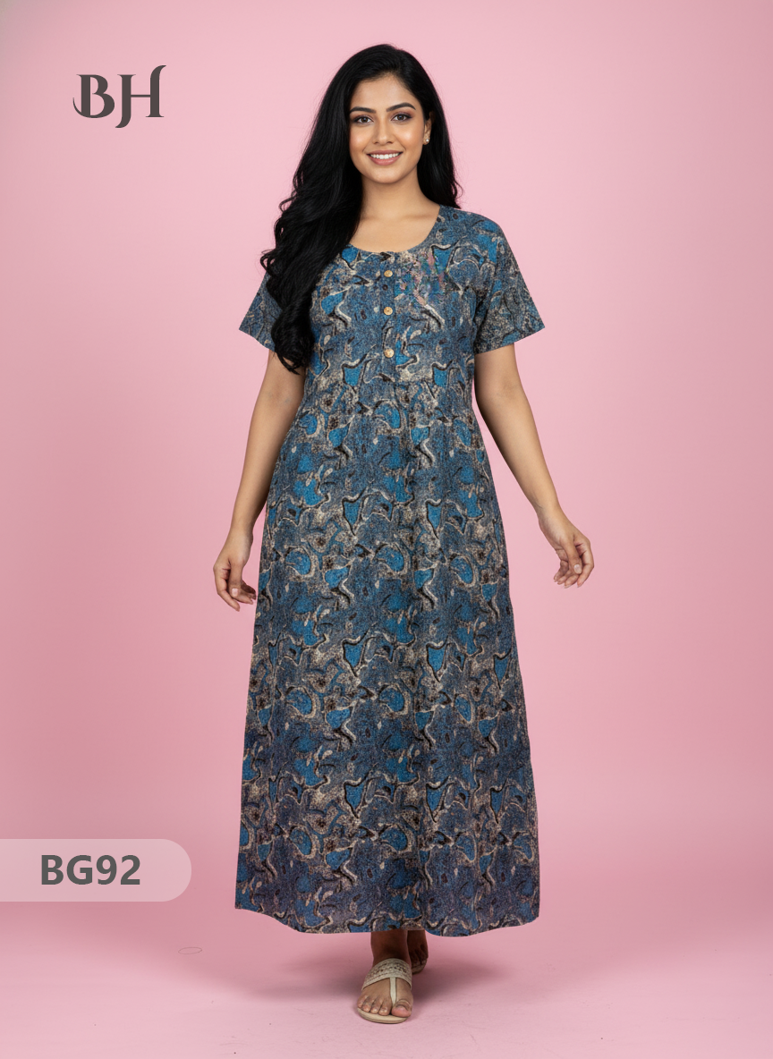 100% Cotton (Soft) Free Size → up to Bust 44" (2XL) Height (Dress Length): 53" Easy Care • Machine Washable