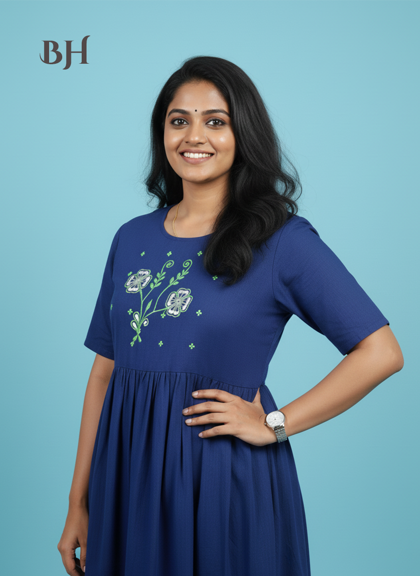 Keywords: Daily Wear Cotton Frock, Bhavana Originals Exclusive, Handloom Cotton Dress, Women’s Everyday Cotton Frock, Comfortable Cotton Frock with Lining, Casual Cotton Outfit.