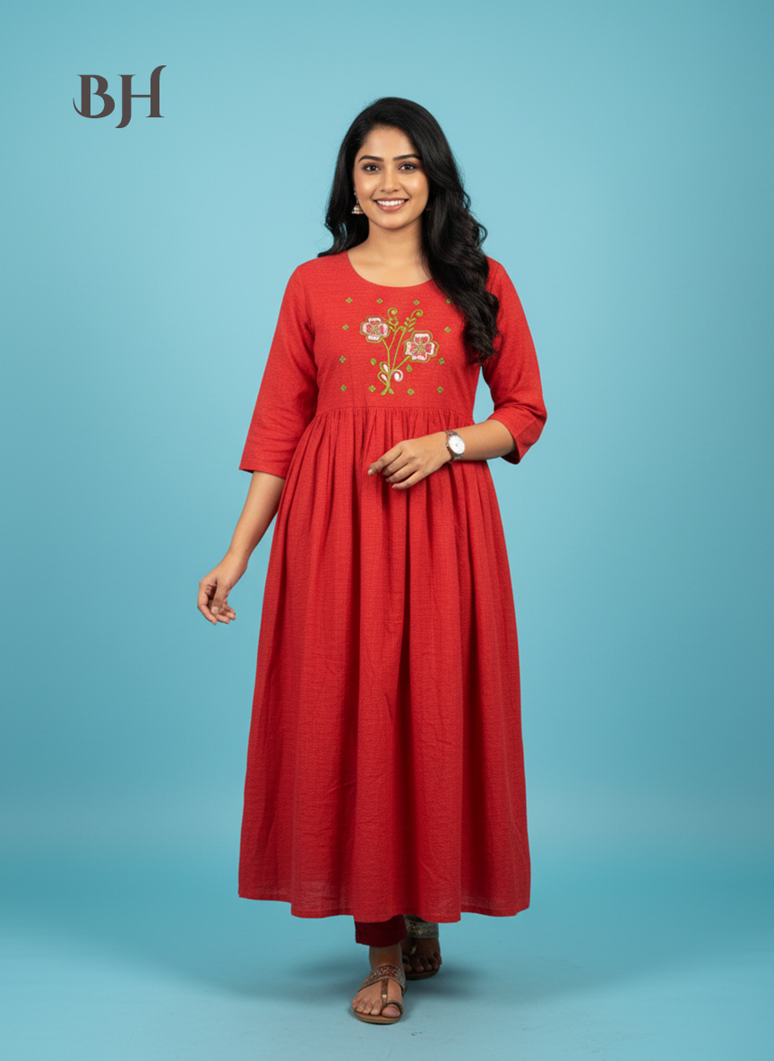 Keywords: Daily Wear Cotton Frock, Bhavana Originals Exclusive, Handloom Cotton Dress, Women’s Everyday Cotton Frock, Comfortable Cotton Frock with Lining, Casual Cotton Outfit.