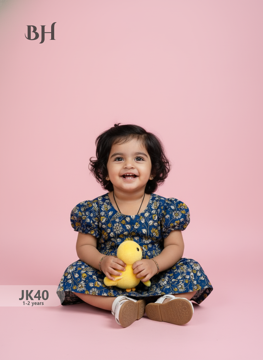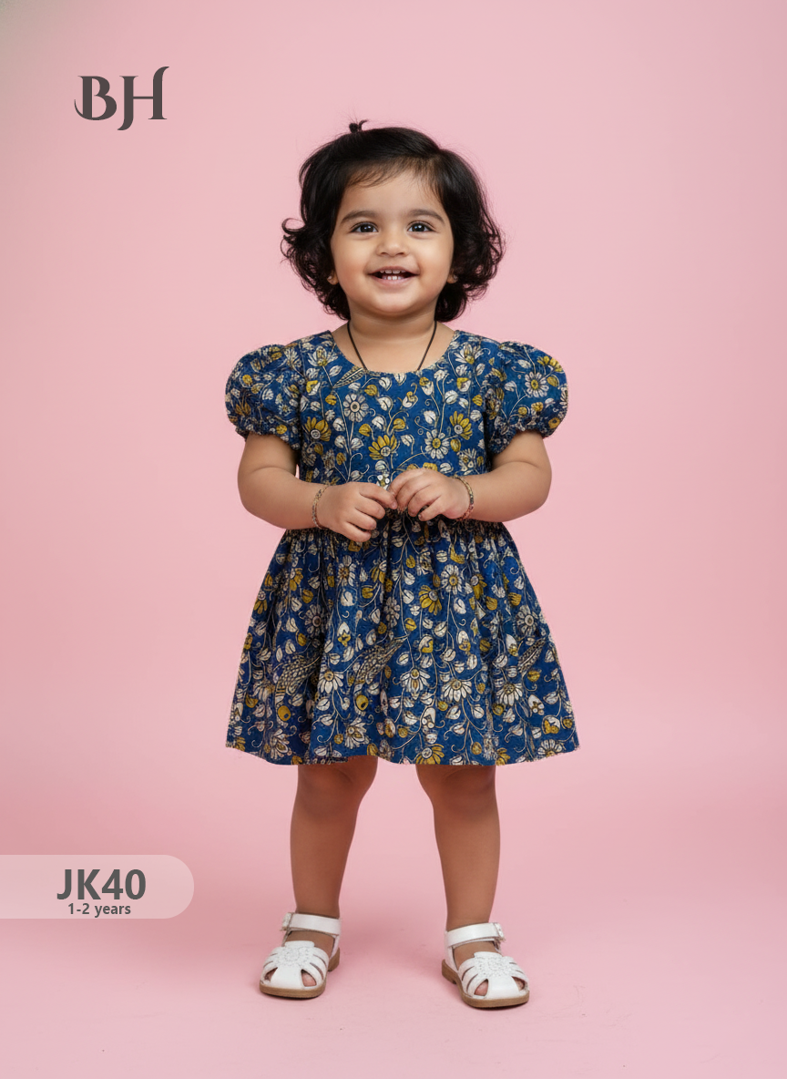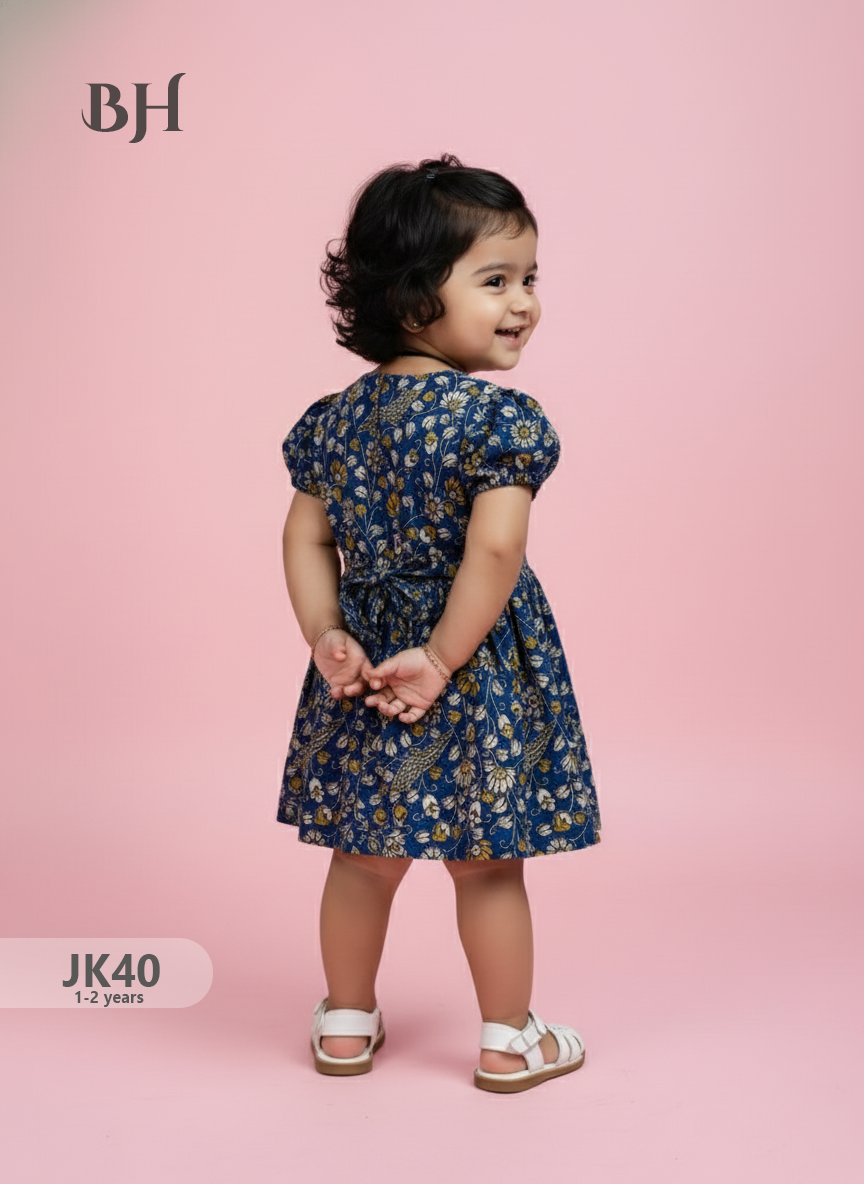 Blue Cotton Printed Baby Frocks – Latest Kids Wear Collection | Bhavana Handlooms