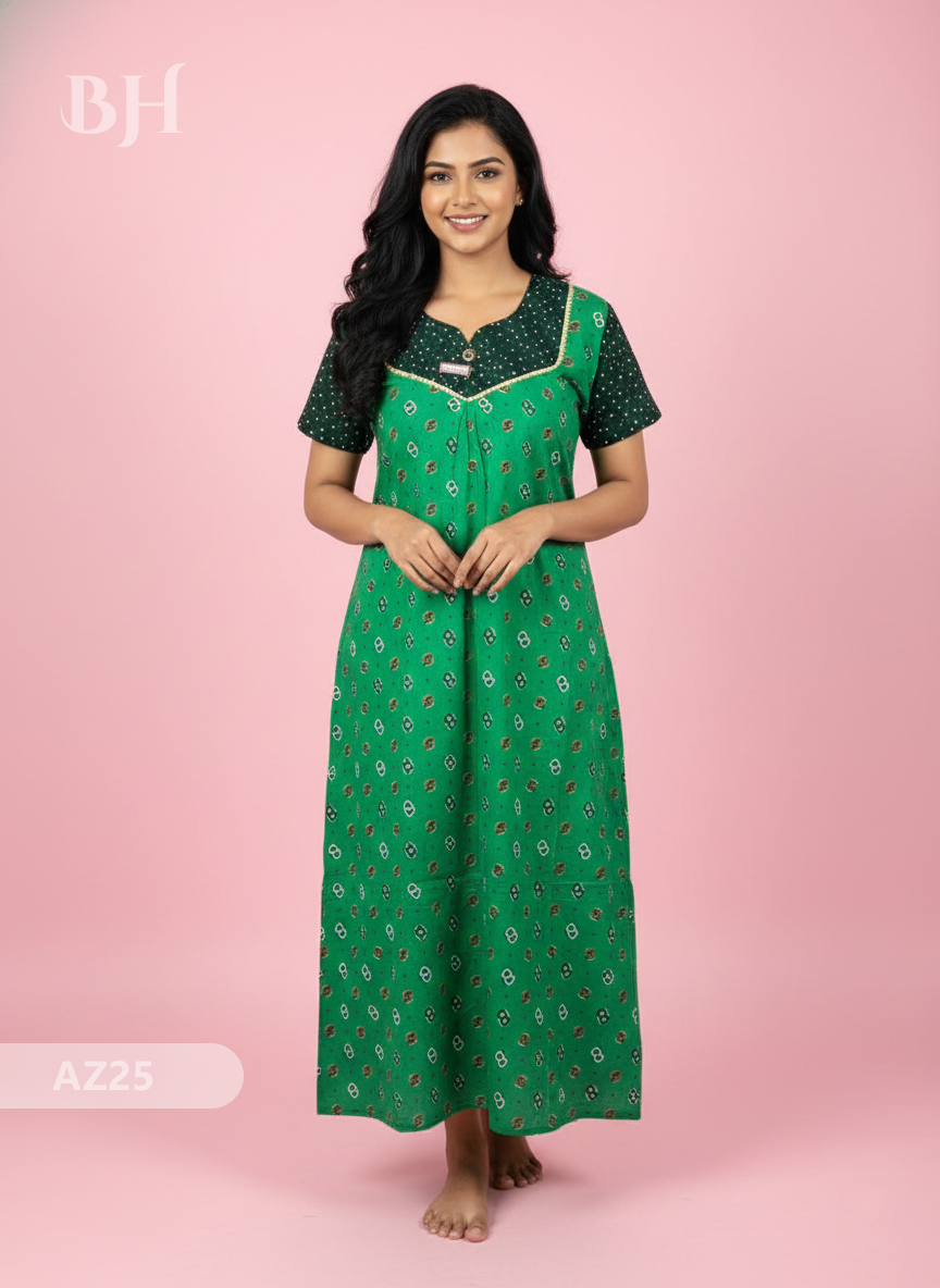 Product form Nighties Cotton Printed Nighties | Comfortable Free Size Nightwear for Women SKU: AZ25 Rs. 275.00 1 in stock Delivered within 3-6 Working Days Quantity Add to cart This item is a recurring or deferred purchase. By continuing, I agree to the cancellation policy and authorize you to charge my payment method at the prices, frequency and dates listed on this page until my order is fulfilled or I cancel, if permitted. 2026 NEW YEAR Estimated Timeline When will it arrive? Dispatch Within 24hrs Transit 3 - 5 Days Est. Delivery Calculating... Official Shipping Partners ✓ ✓ Share WhatsApp Deel Messenger Email Share