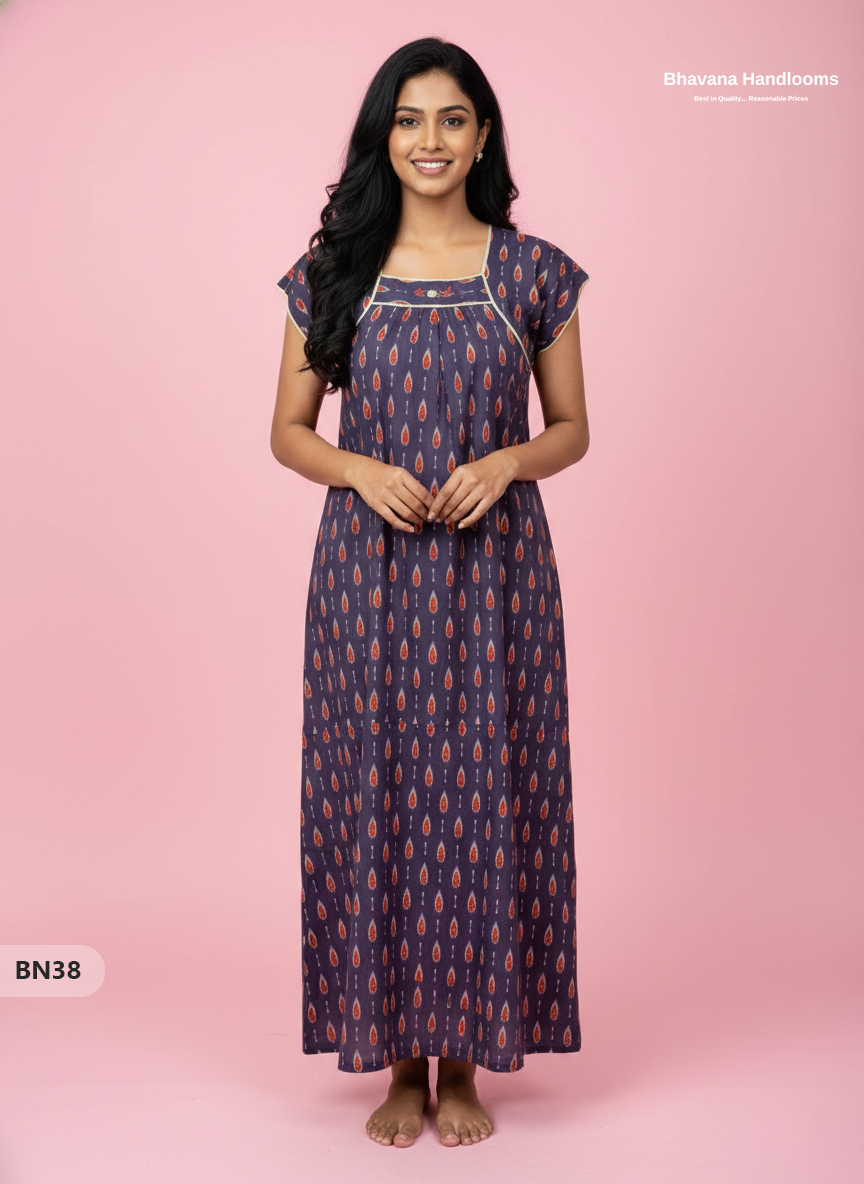 Product form Nighties Cotton Printed Nighties | Comfortable Free Size Nightwear for Women SKU: BN38 Rs. 275.00 1 in stock Delivered within 3-6 Working Days Quantity Add to cart This item is a recurring or deferred purchase. By continuing, I agree to the cancellation policy and authorize you to charge my payment method at the prices, frequency and dates listed on this page until my order is fulfilled or I cancel, if permitted. 2026 NEW YEAR Estimated Timeline When will it arrive? Dispatch Within 24hrs Transit 3 - 5 Days Est. Delivery Calculating... Official Shipping Partners ✓ ✓ Share WhatsApp Deel Messenger Email Share