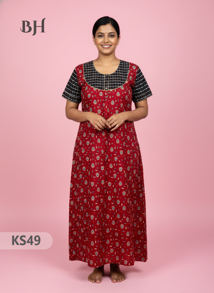 Cotton Printed Nighties | Comfortable Free Size Nightwear for Women