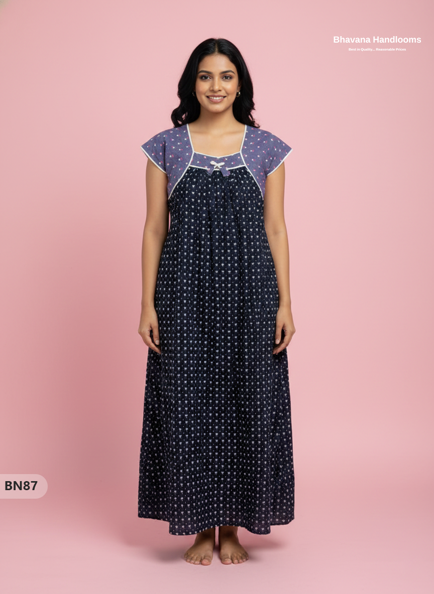 Product form Nighties Cotton Printed Nighties | Comfortable Free Size Nightwear for Women SKU: BN87 Rs. 300.00 1 in stock Delivered within 3-6 Working Days Quantity Add to cart This item is a recurring or deferred purchase. By continuing, I agree to the cancellation policy and authorize you to charge my payment method at the prices, frequency and dates listed on this page until my order is fulfilled or I cancel, if permitted. Women's Day Special When will it arrive? Dispatch 24 Hours Transit 3-5 Days Expected Delivery Calculating... Trusted Partners ✓ ✓ Share WhatsApp Deel Messenger Email Share