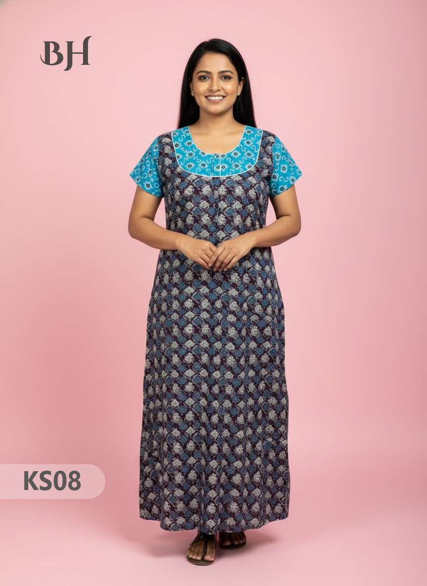 Cotton Printed Nighties | Comfortable Free Size Nightwear for Women