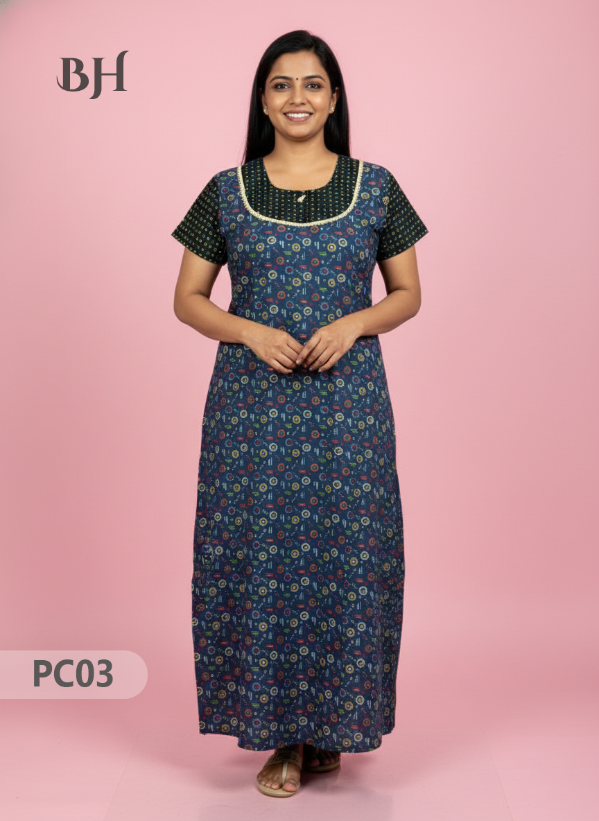 Cotton Printed Nighties | Comfortable Free Size Nightwear for Women