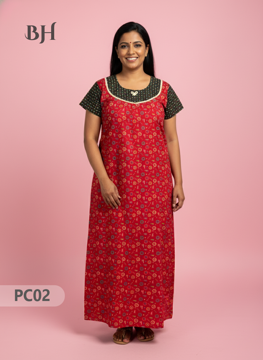 Cotton Printed Nighties | Comfortable Free Size Nightwear for Women