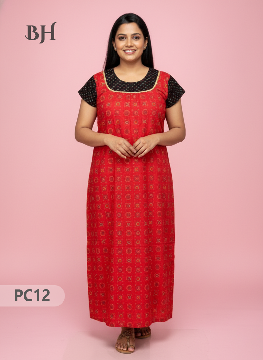 Cotton Printed Nighties | Comfortable Free Size Nightwear for Women