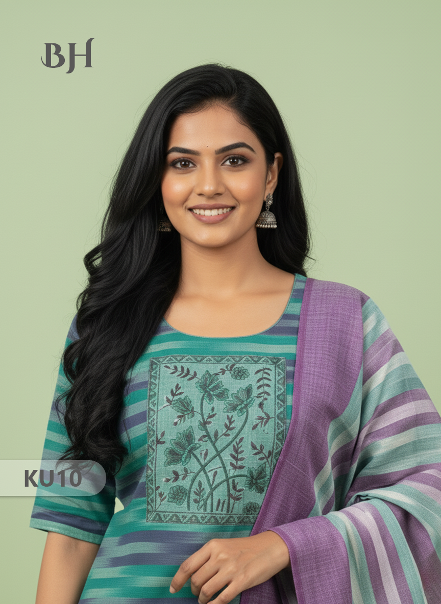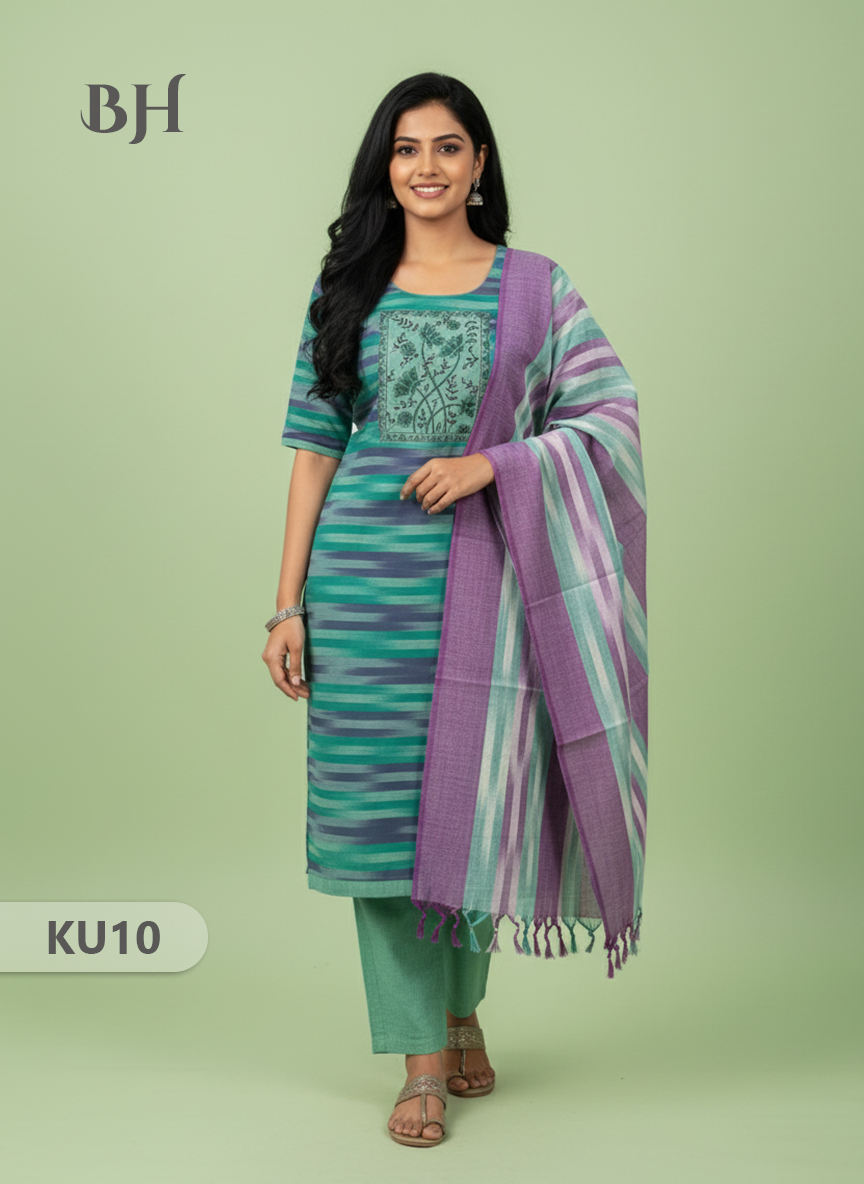 Keywords: Premium Cotton Kurti Set, 3 Piece Ethnic Set, Straight Cut Kurti with Dupatta, Bhavana Originals, Cotton Kurti with Full-Length Lining.