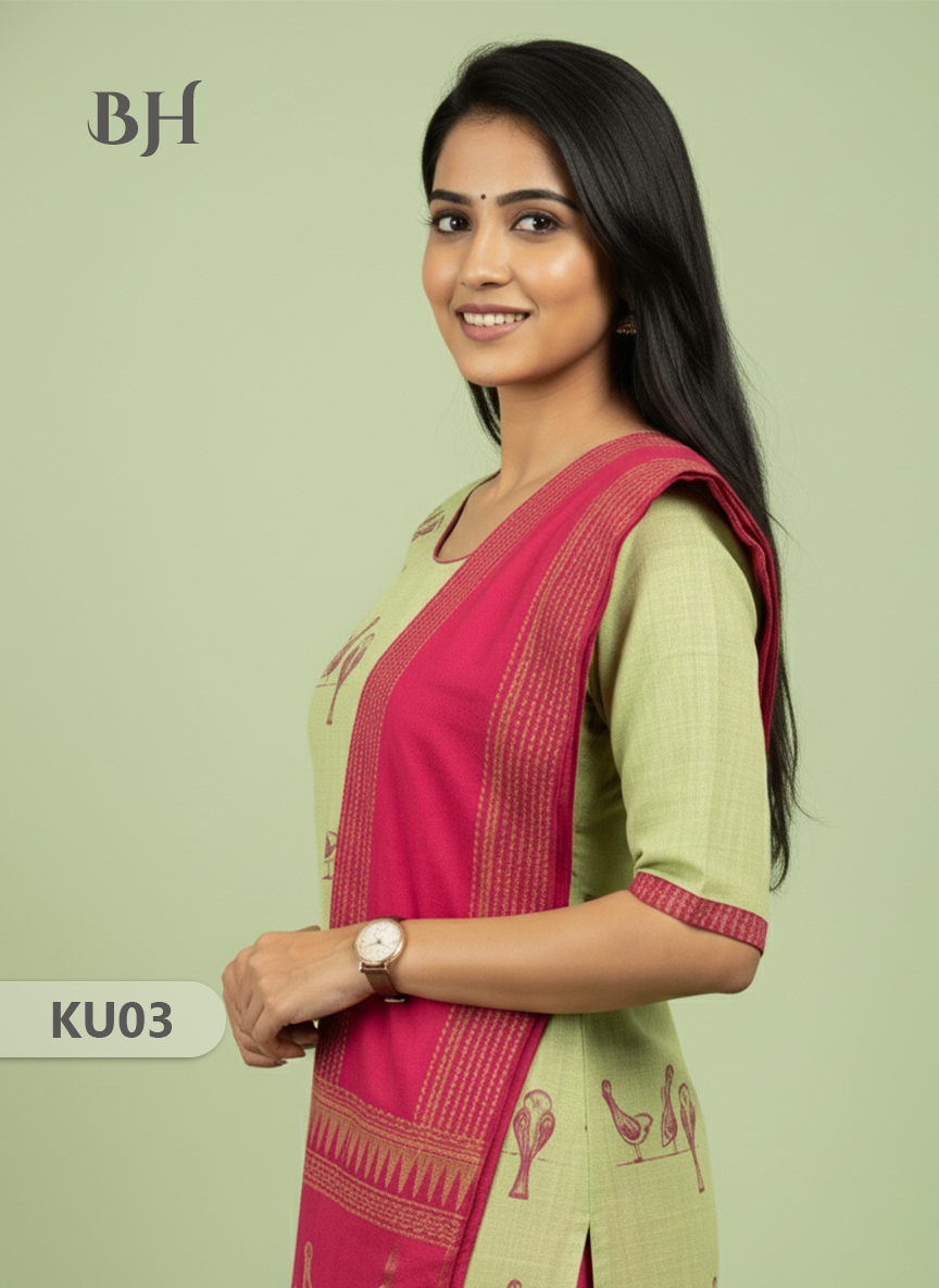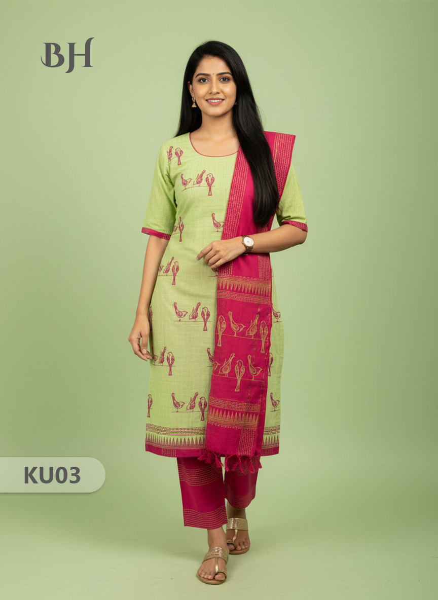 Keywords: Premium Cotton Kurti Set, 3 Piece Ethnic Set, Straight Cut Kurti with Dupatta, Bhavana Originals, Cotton Kurti with Full-Length Lining.