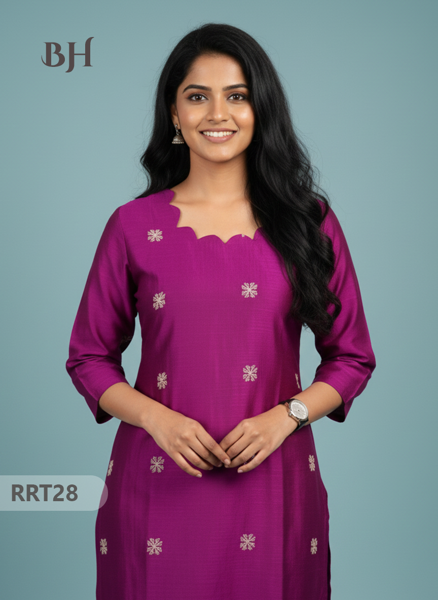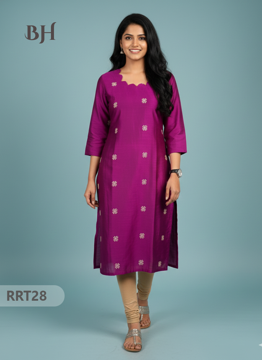 Keywords: Raw Silk Straight Cut Top, Bhavana Originals, Designer Cut Work Neck Top, Full-Length Lining Silk Top, Women’s Ethnic Silk Top, Handcrafted Raw Silk Kurti.