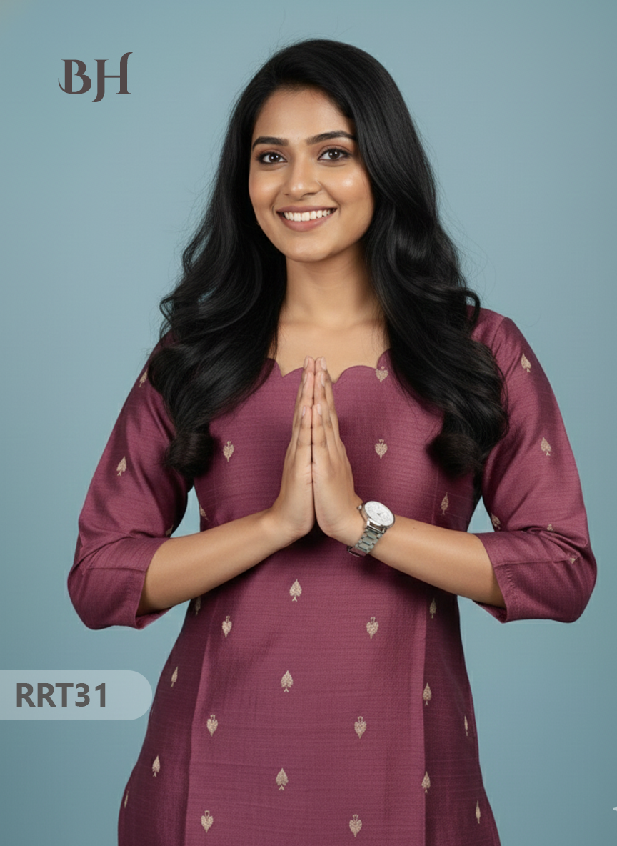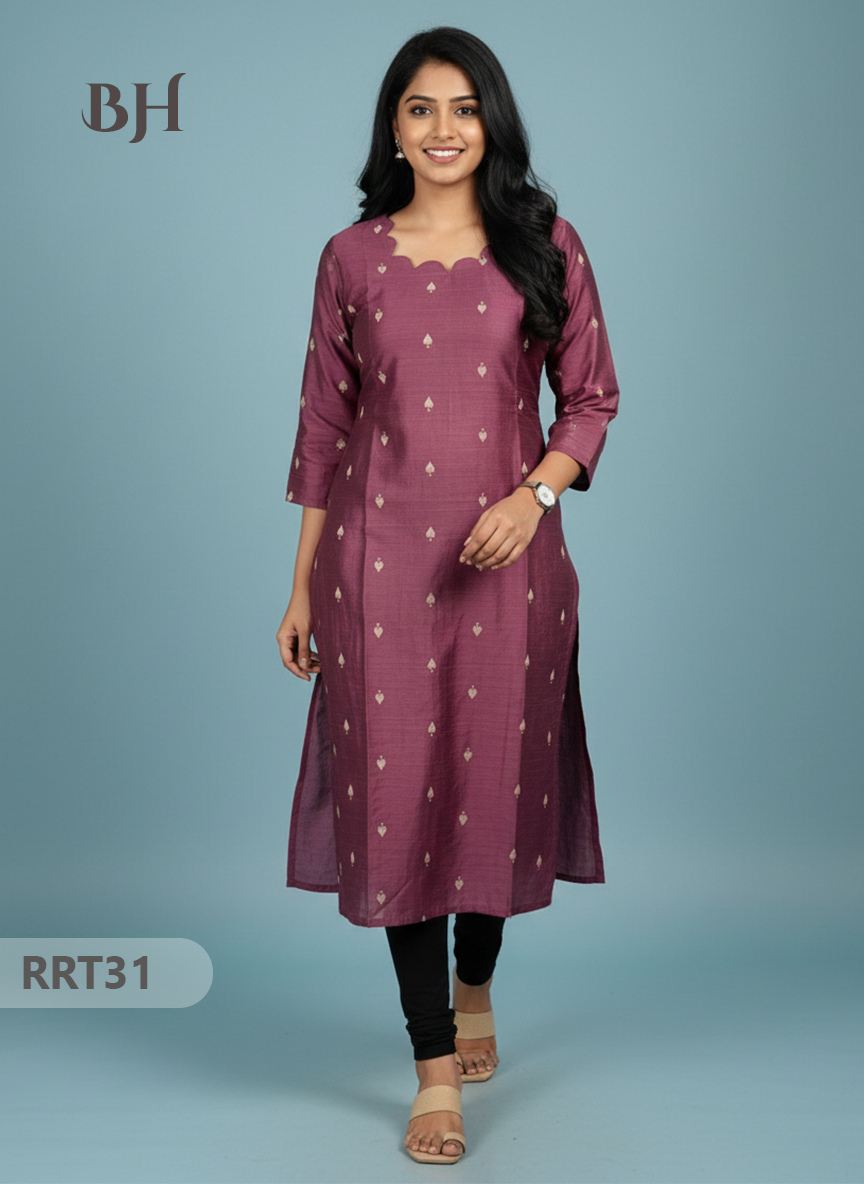 Keywords: Raw Silk Straight Cut Top, Bhavana Originals, Designer Cut Work Neck Top, Full-Length Lining Silk Top, Women’s Ethnic Silk Top, Handcrafted Raw Silk Kurti.