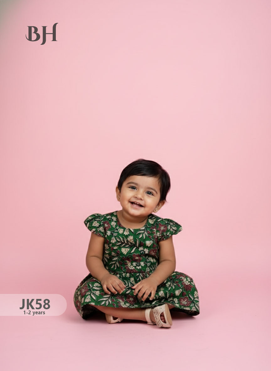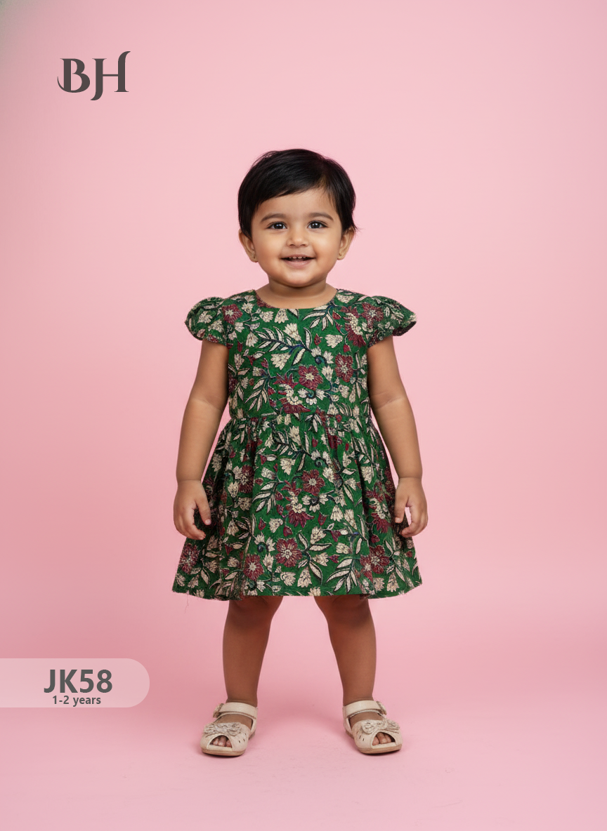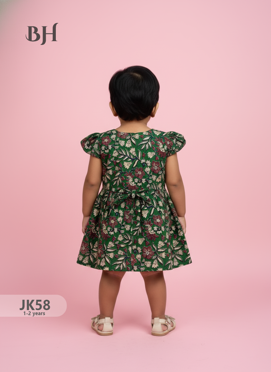 Drak Green Cotton Printed Baby Frocks – Latest Kids Wear Collection | Bhavana Handlooms