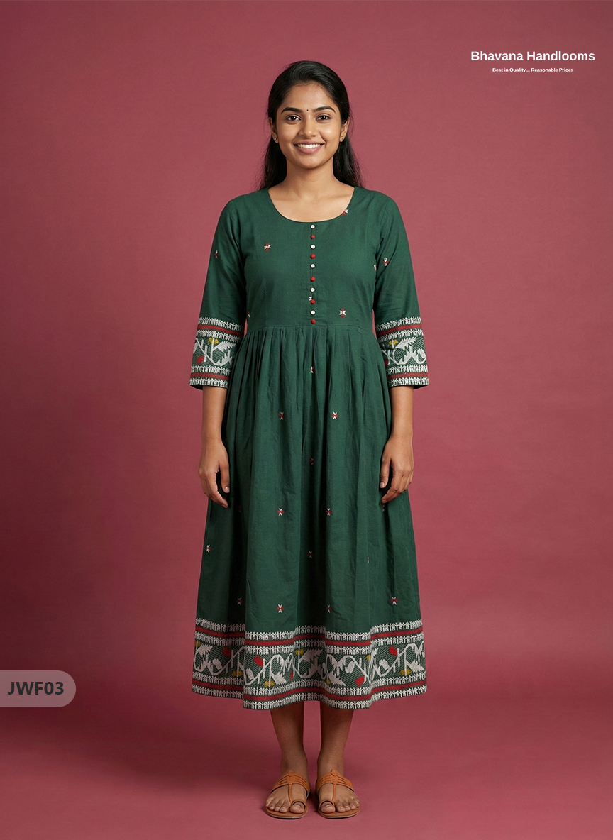 Exclusive Premium Jacquard Woven Frock in Dark Green | 120 Count Fabric | Limited Edition