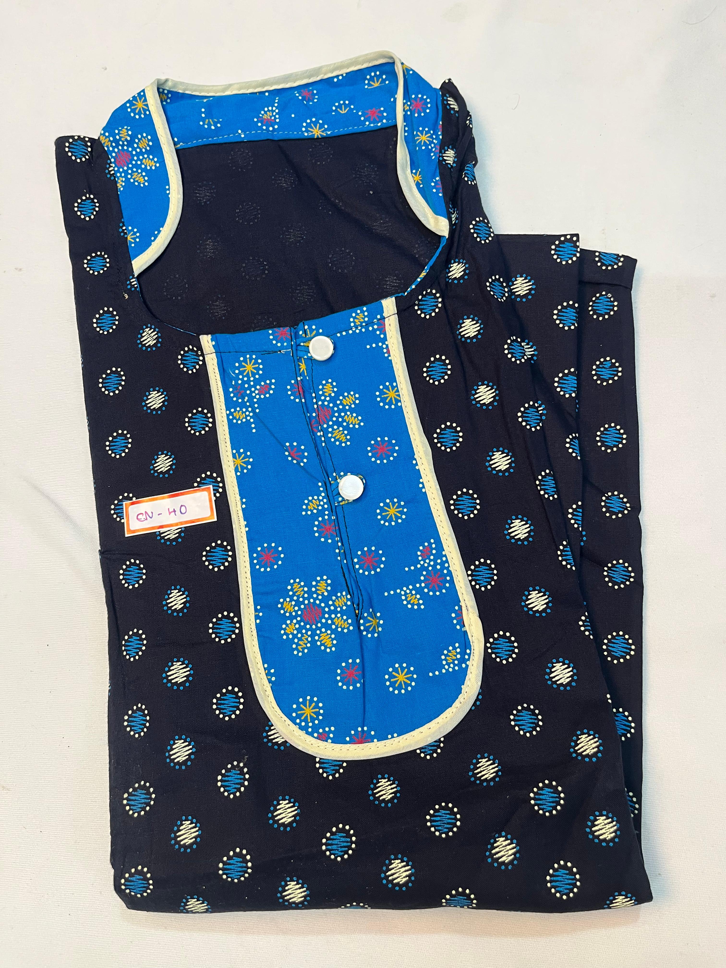Free Style Collar Nighty with Buttons – Dark Blue Colour