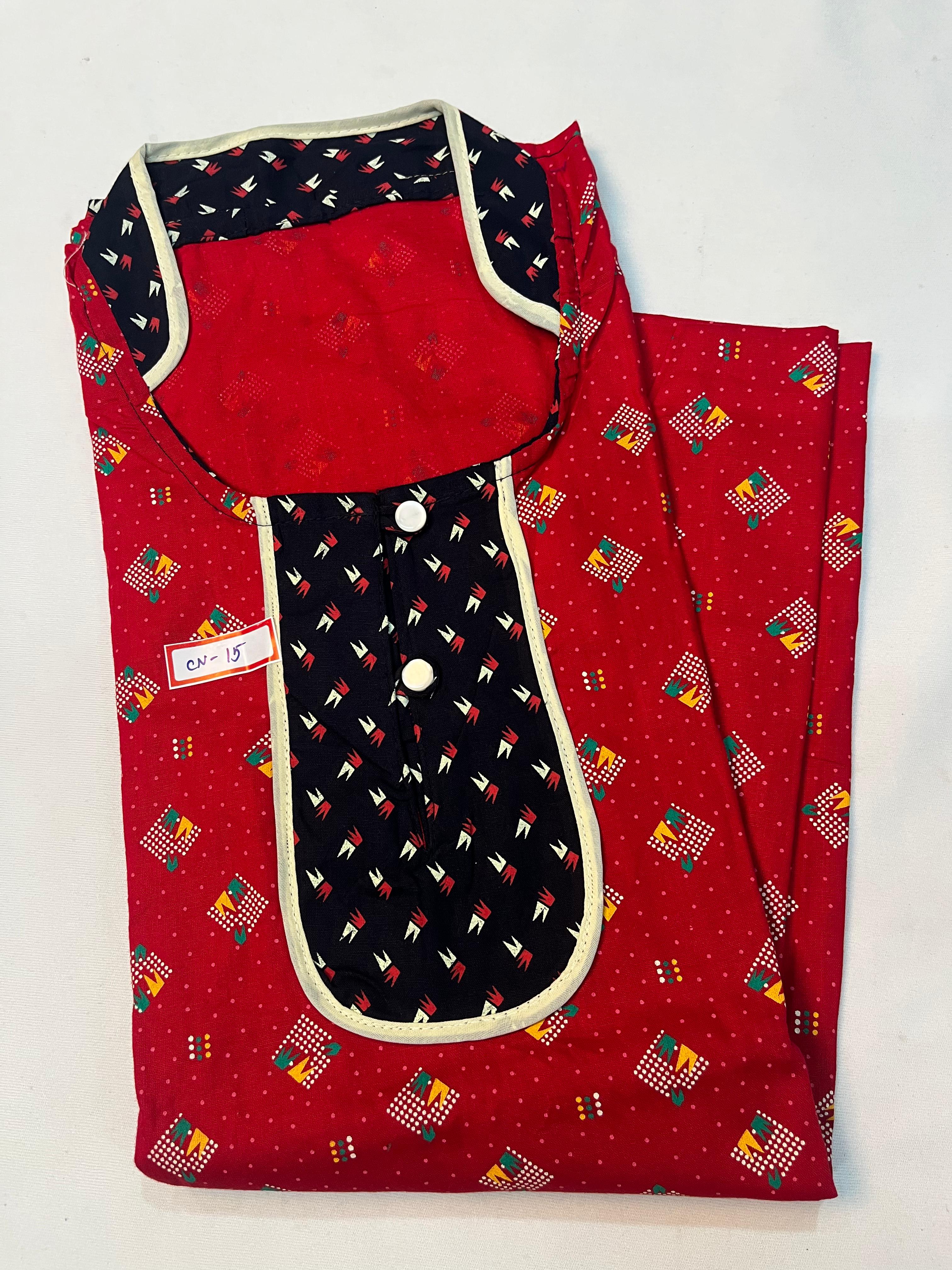 Free Style Collar Nighty with Buttons – Red Colour