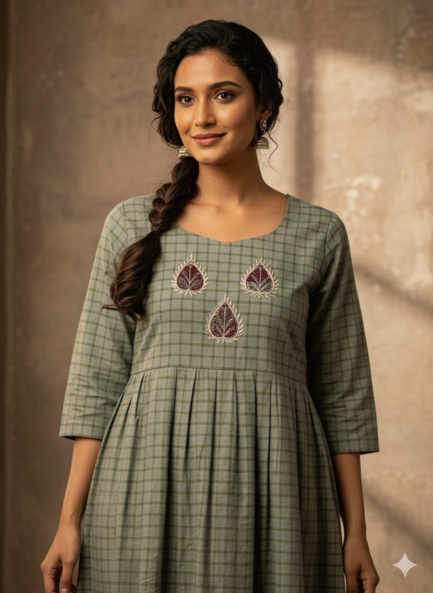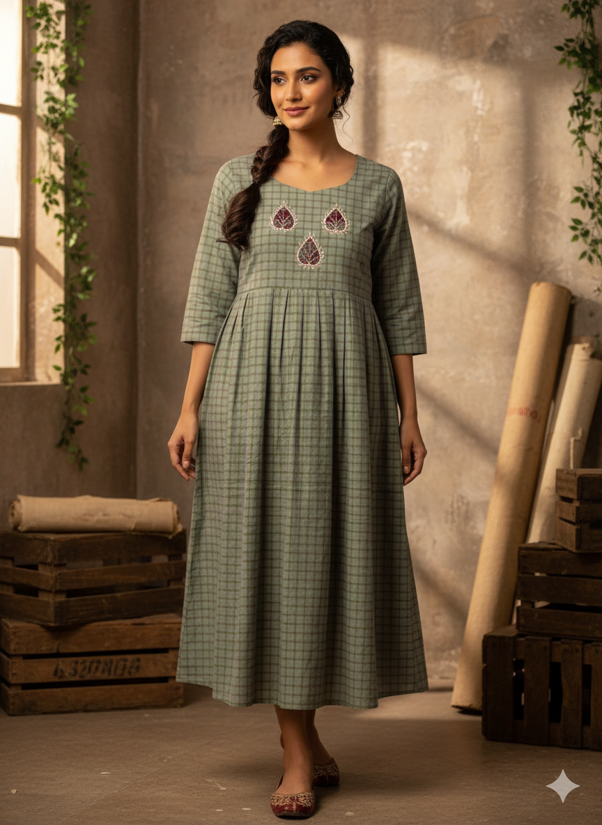 Gray Checks Cotton Frock for Women – Casual Wear | Bhavana Handlooms
