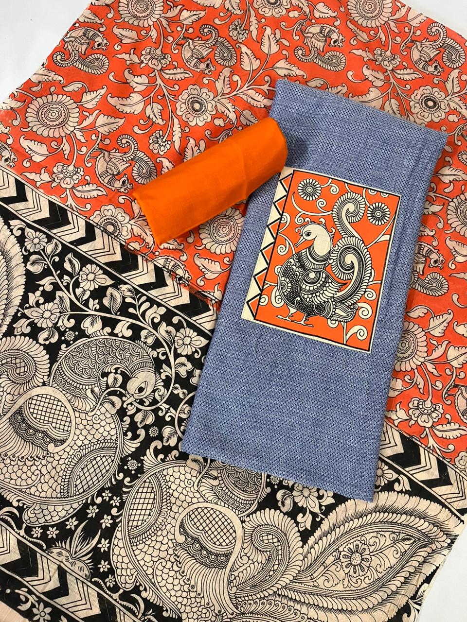 Product form Dress Materials Gray Kalamkari Cotton 3 Piece Suit Material Set | Unstitched Top Bottom Dupatta SKU: NCD25 Rs. 660.00 20 in stock Delivered within 3-6 Working Days Quantity Add to cart Need help? WhatsApp assistance › Women's Day Special When will it arrive? Dispatch 24 Hours Transit 3-5 Days Expected Delivery Calculating... Trusted Partners ✓ ✓ Share WhatsApp Deel Messenger Email Share