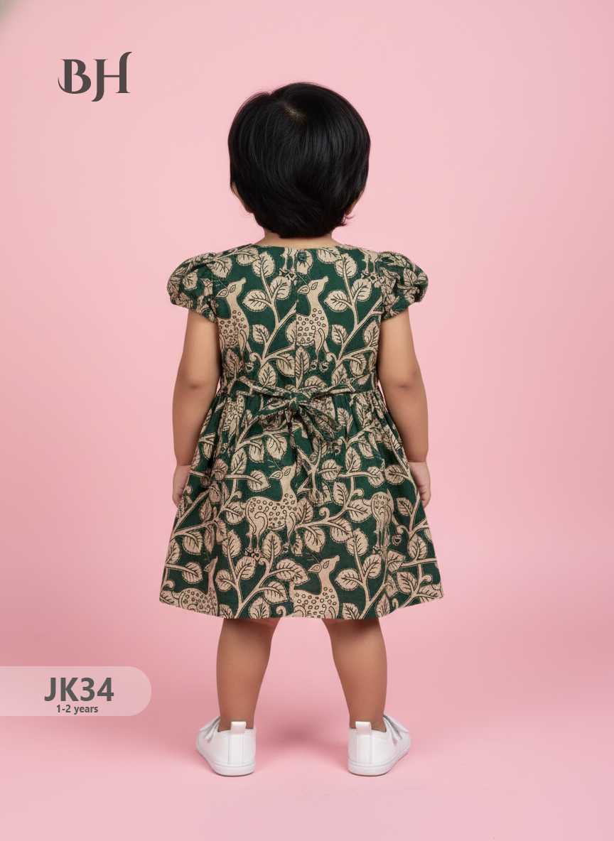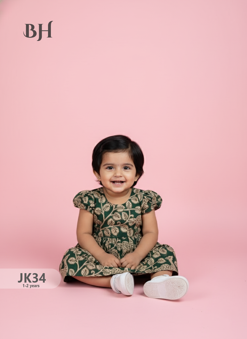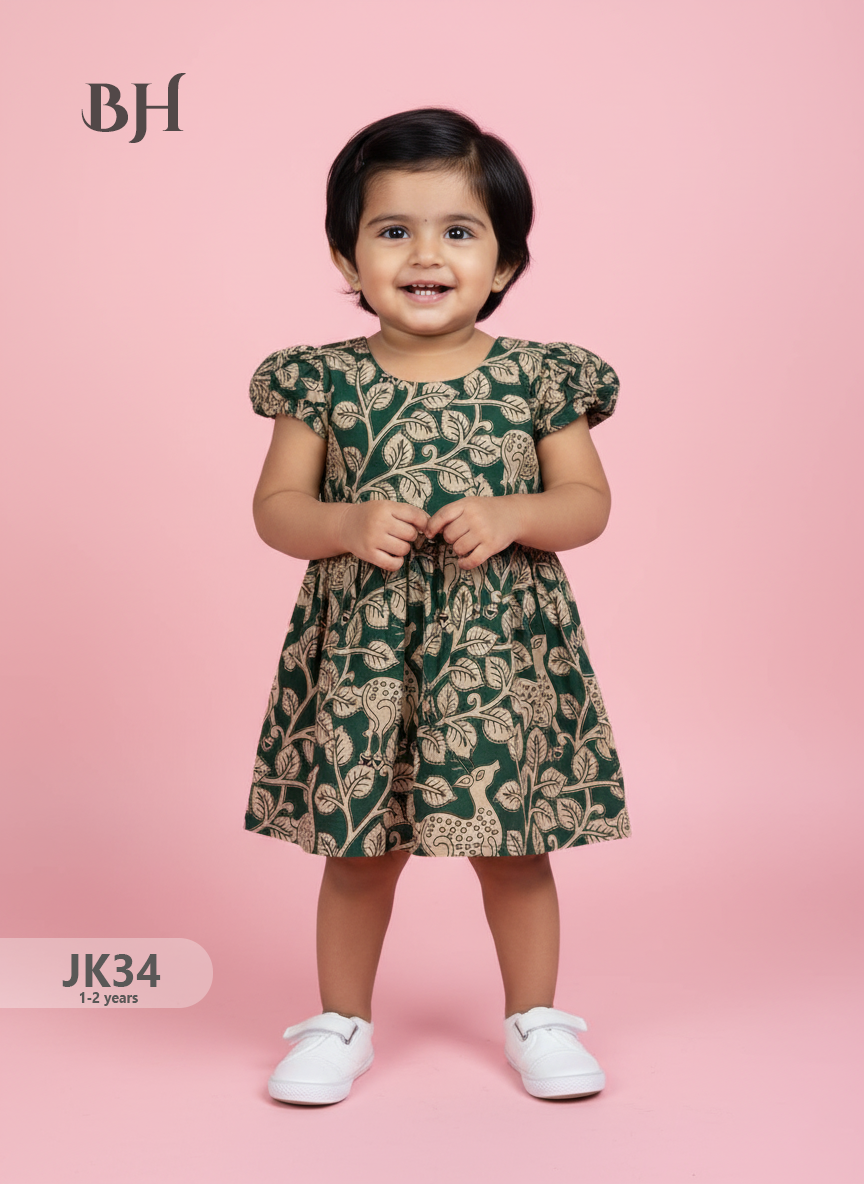 Green Cotton Printed Baby Frocks – Latest Kids Wear Collection | Bhavana Handlooms