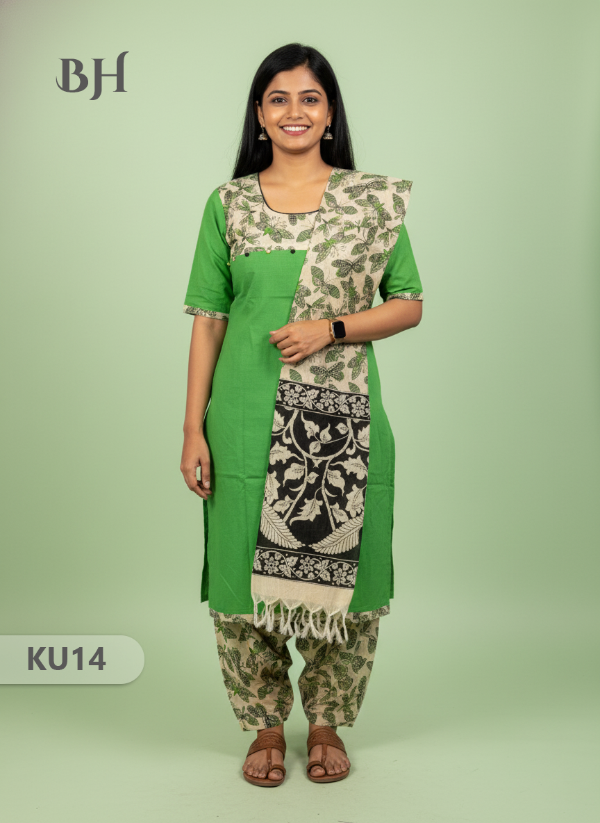 Keywords: Premium Cotton Kurti Set, 3 Piece Ethnic Set, Straight Cut Kurti with Dupatta, Bhavana Originals, Cotton Kurti with Full-Length Lining.