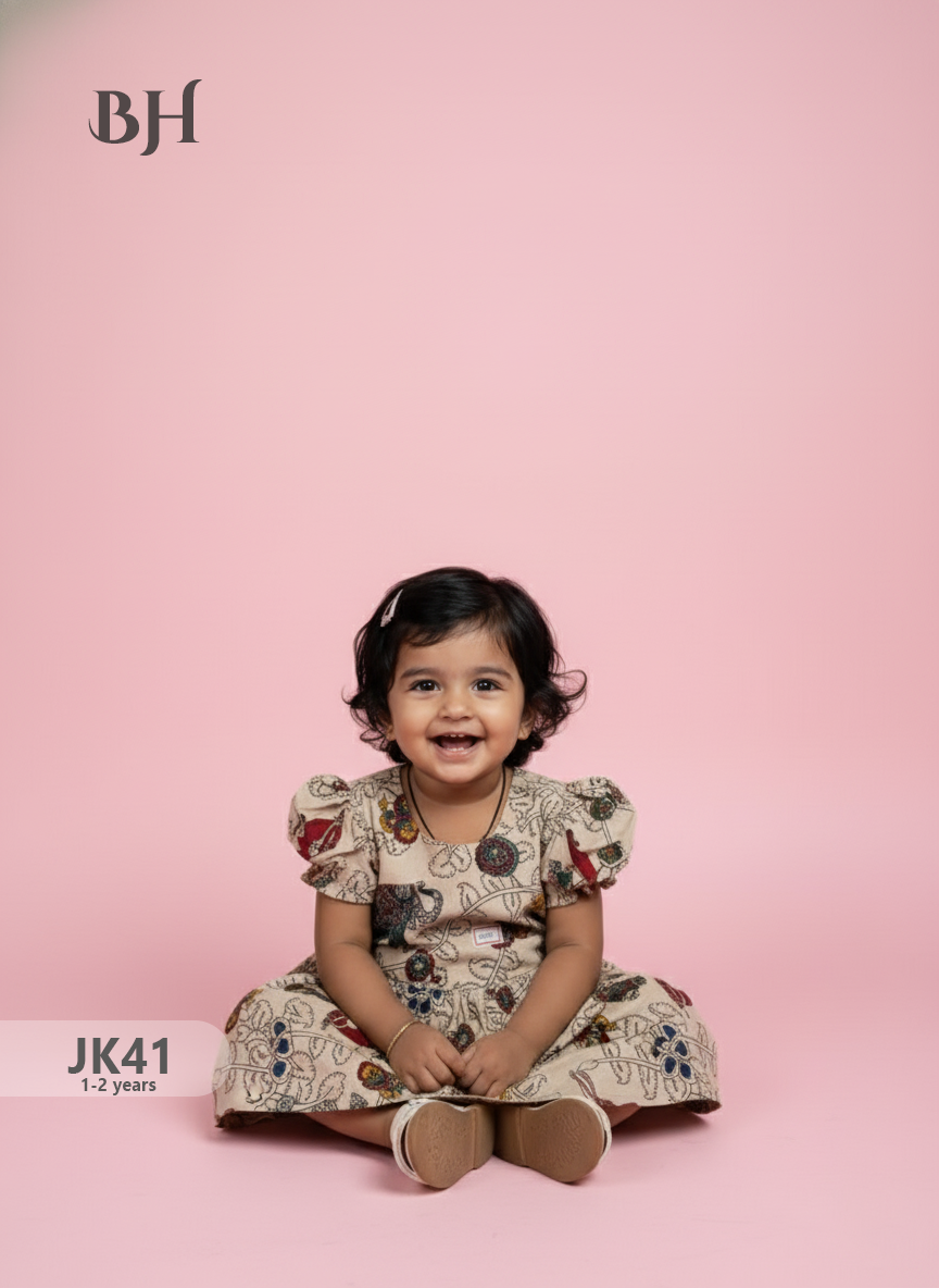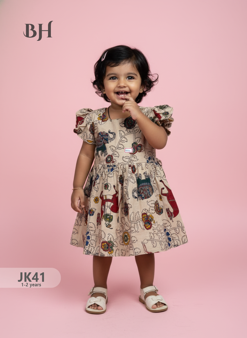 Half White Cotton Printed Baby Frocks – Latest Kids Wear Collection | Bhavana Handlooms