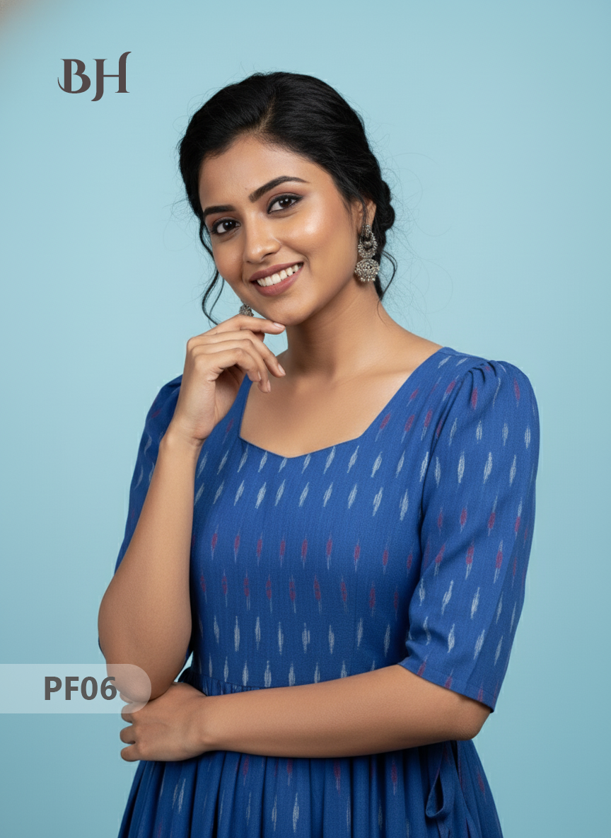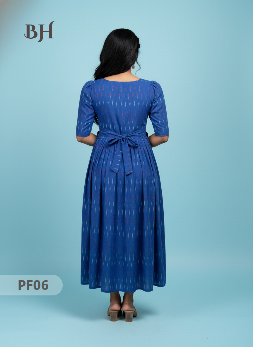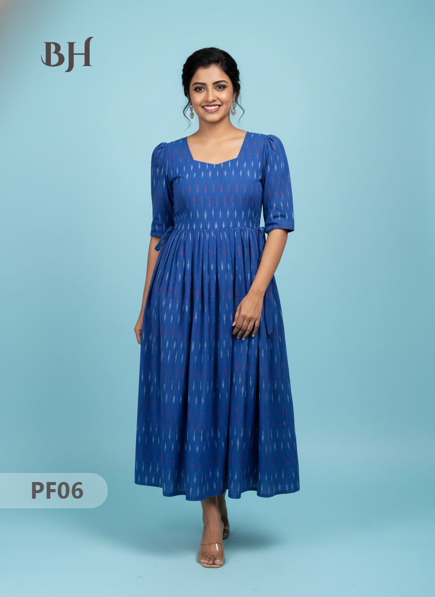 Handcrafted Pochampally Blue Cotton Frock with Knot Detailing – Ethnic Wear for Women