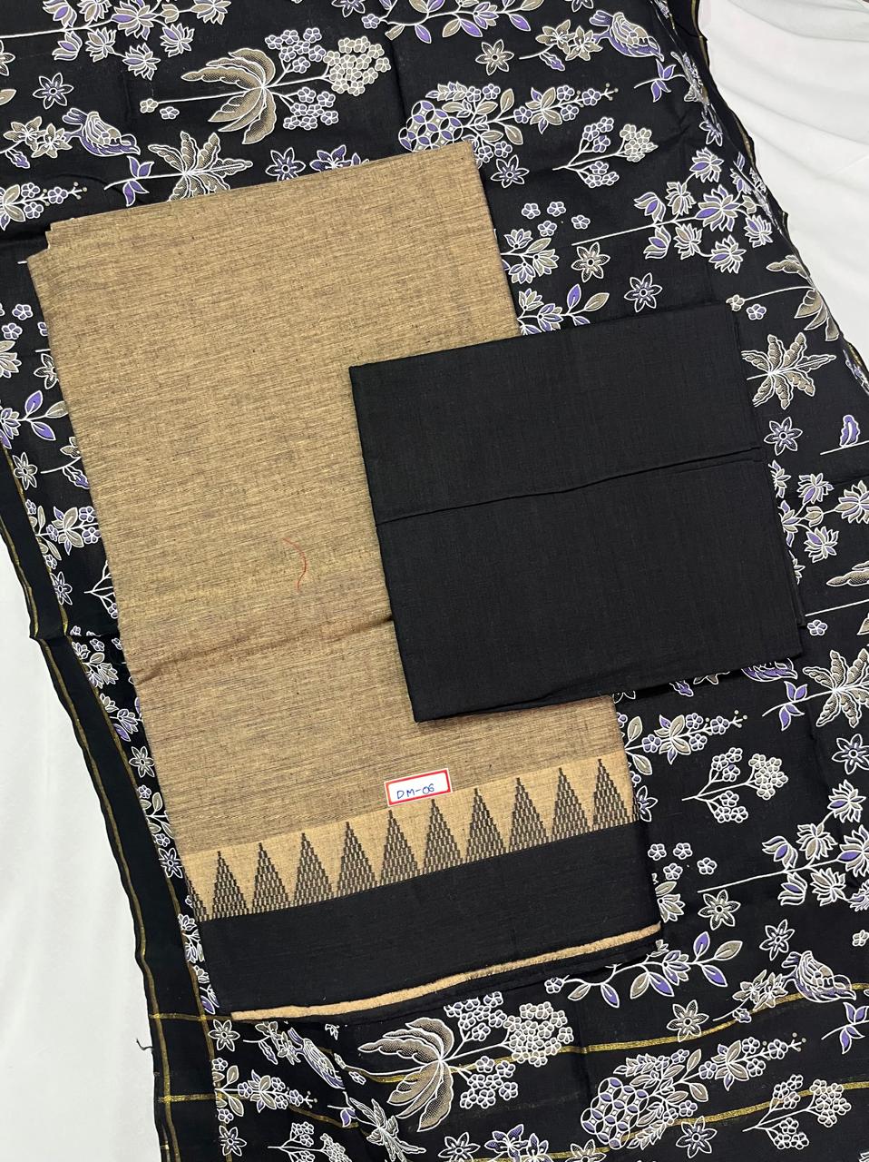 Handloom Cotton Dress Material – Black & Brown Color | Bhavana Handlooms