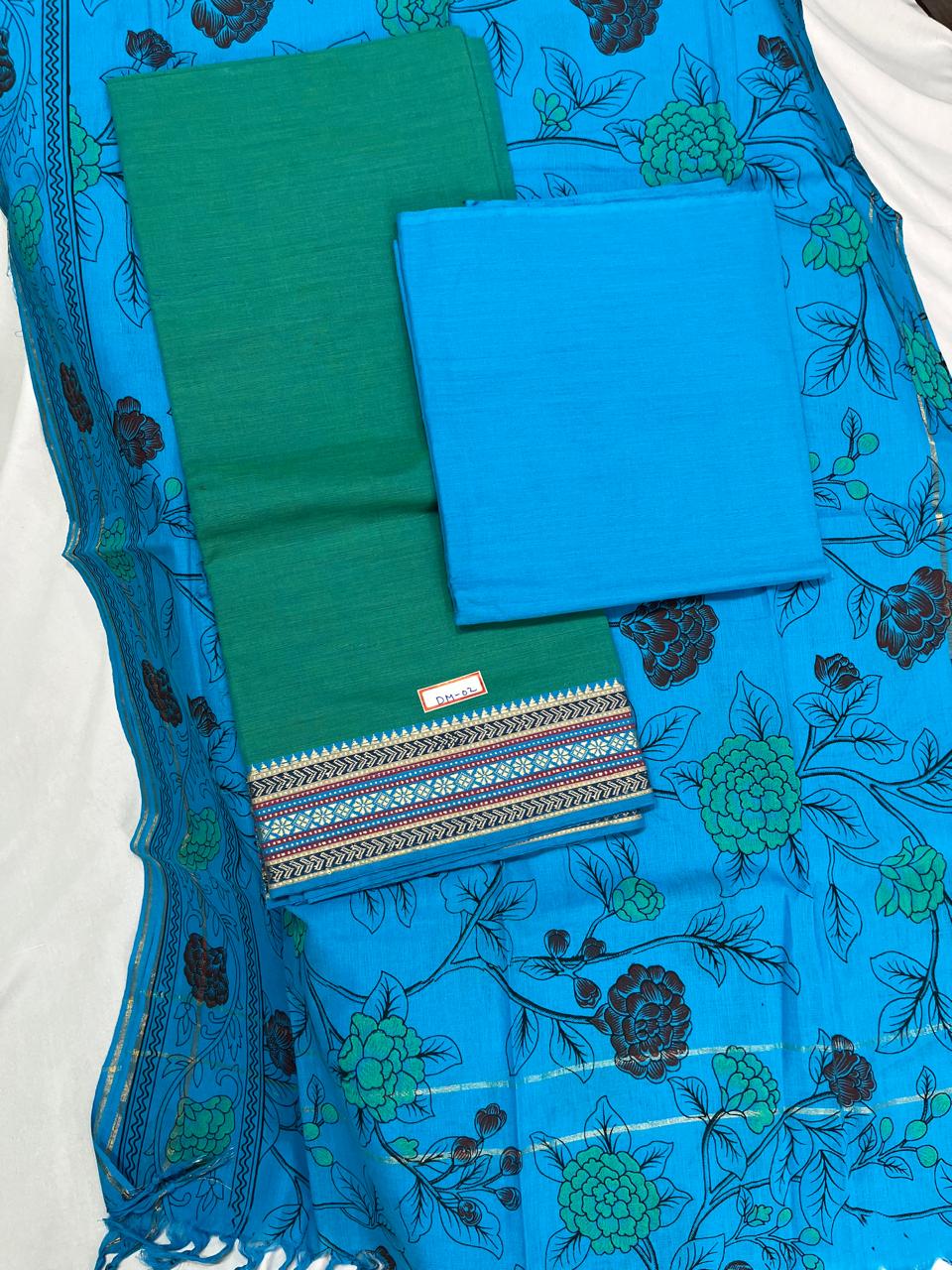 Handloom Cotton Dress Material – Sea Green & Sky Blue Color | Bhavana Handlooms