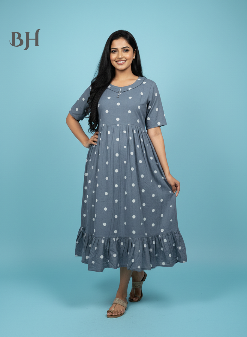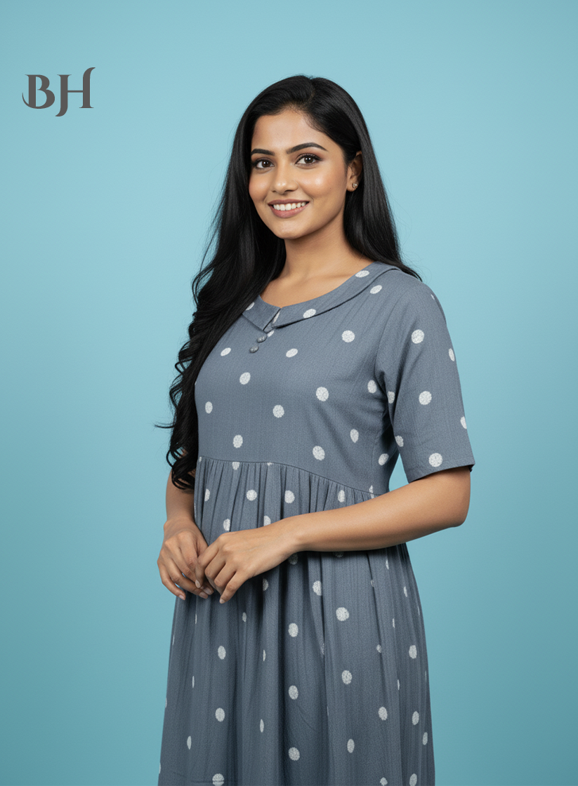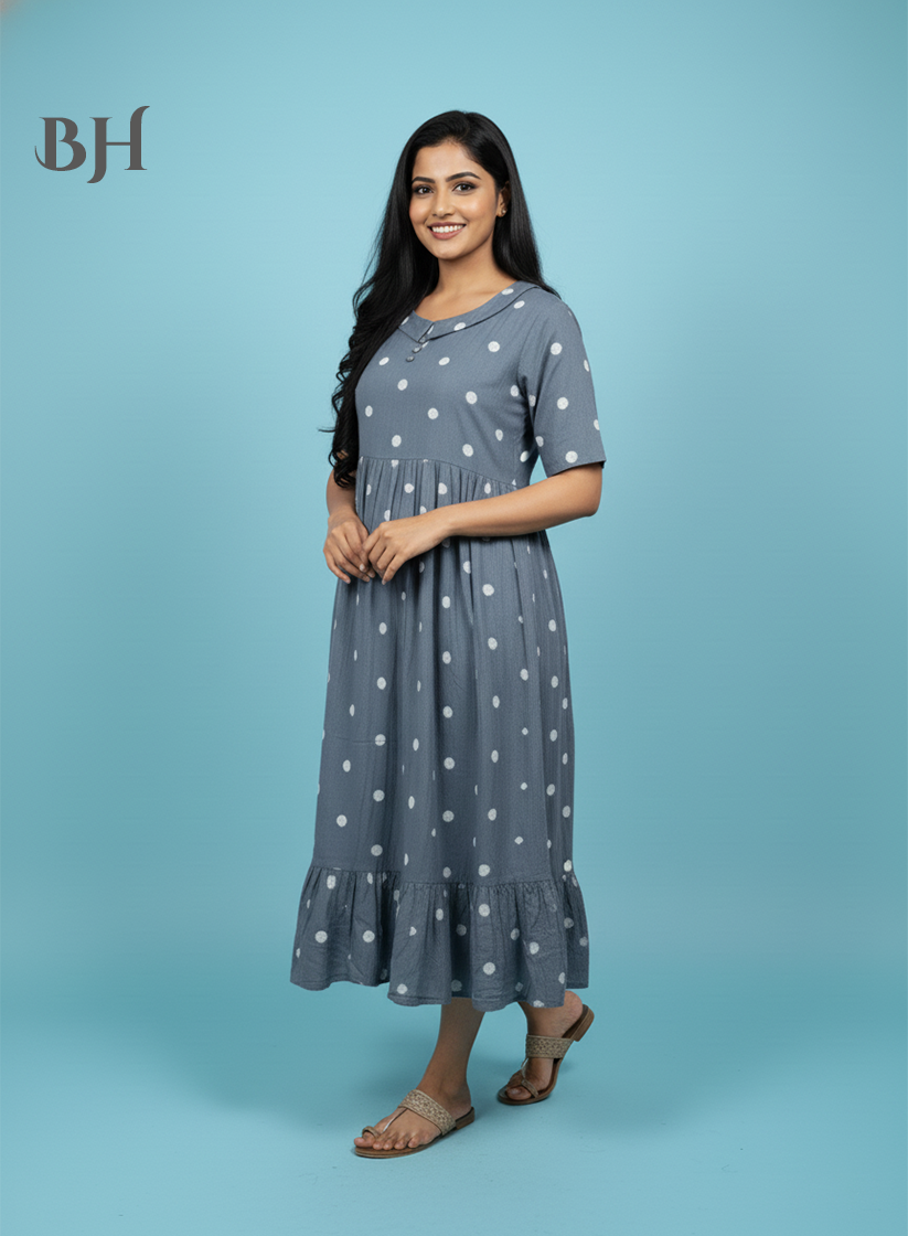 Handloom Jacquard Collar Neck Cotton Frock – Elegant Gray Dress for Women
