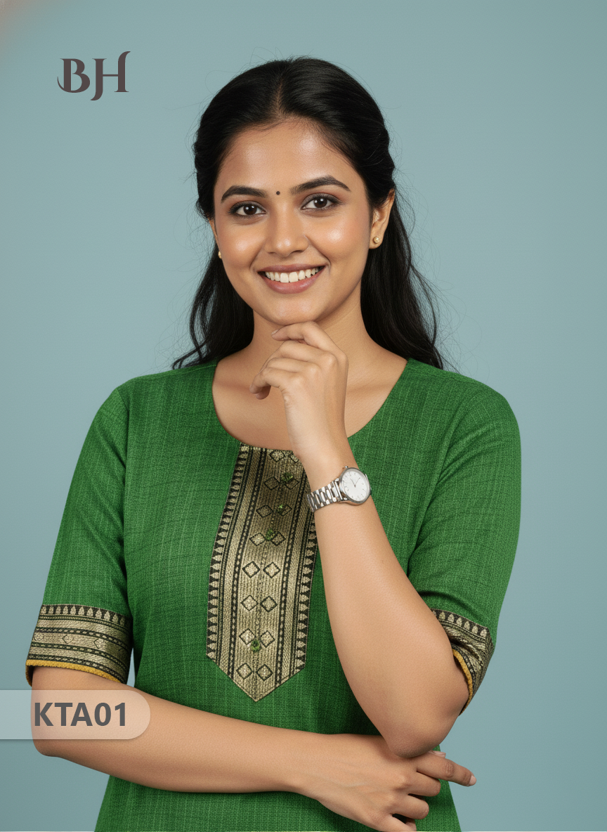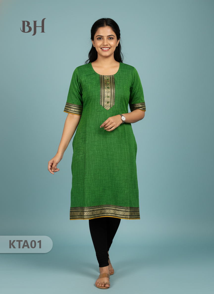 Handloom Straight Cut Top Dark Green Color with No lining | Ethnic Cotton Wear