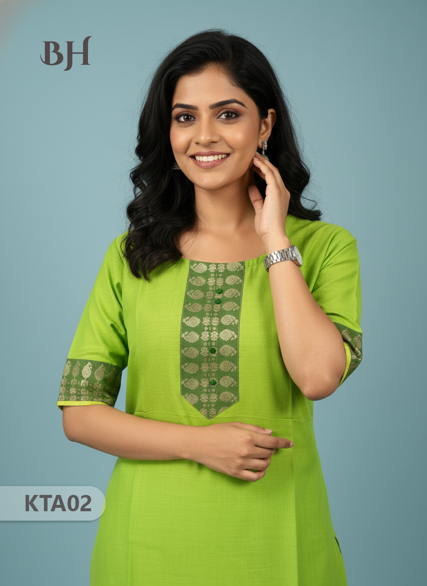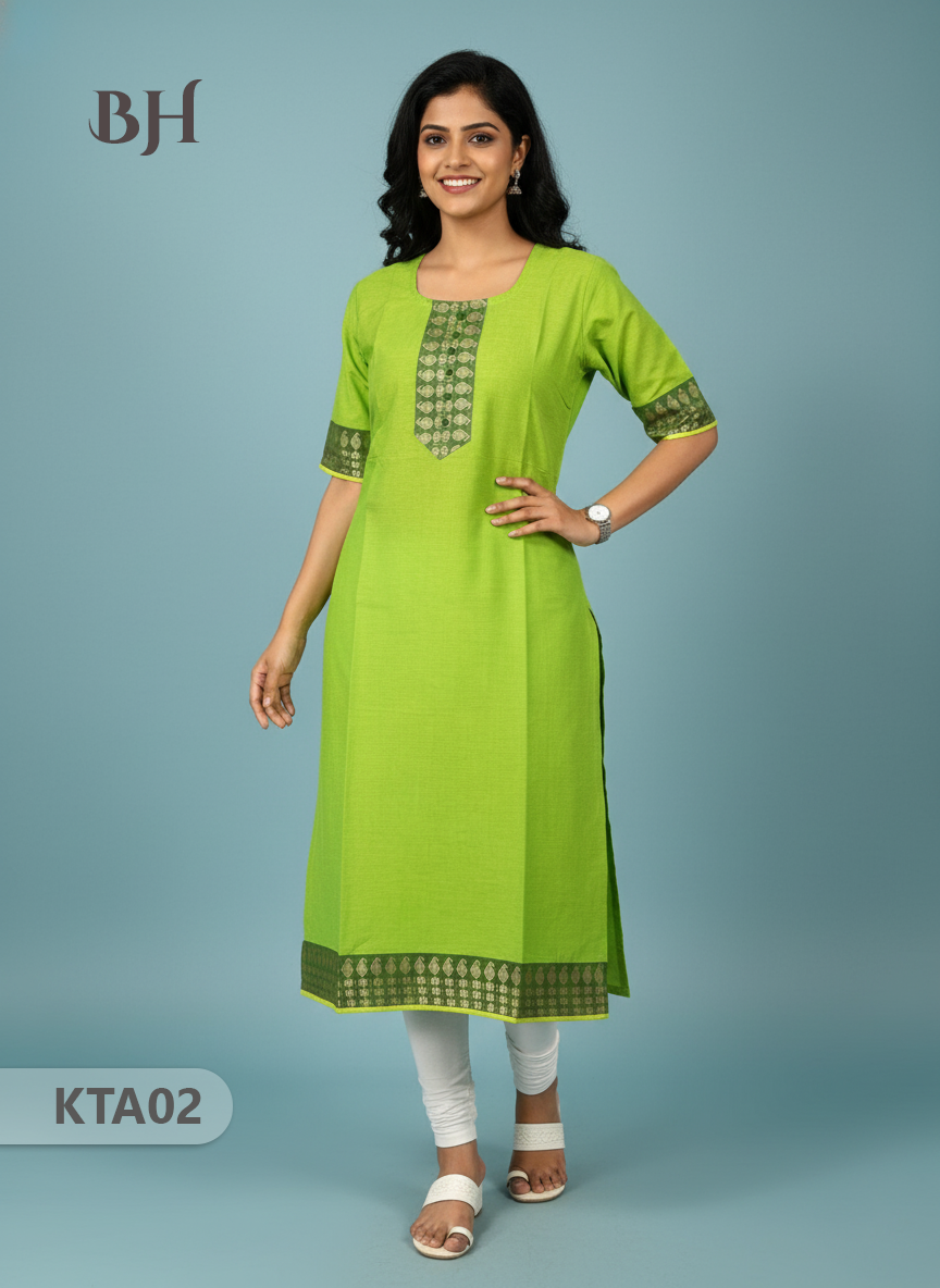 Handloom Straight Cut Top Light Green Color with No lining | Ethnic Cotton Wear