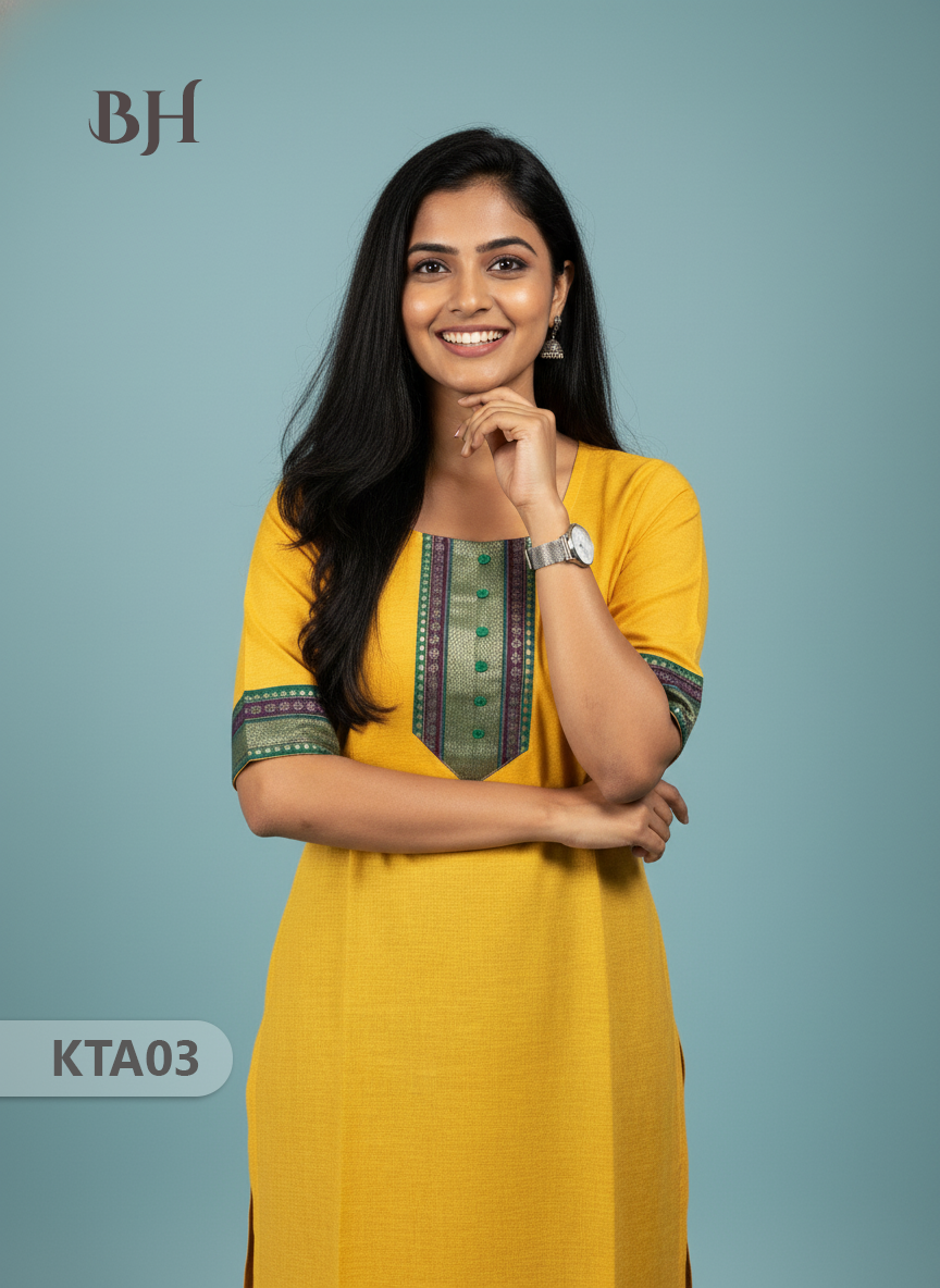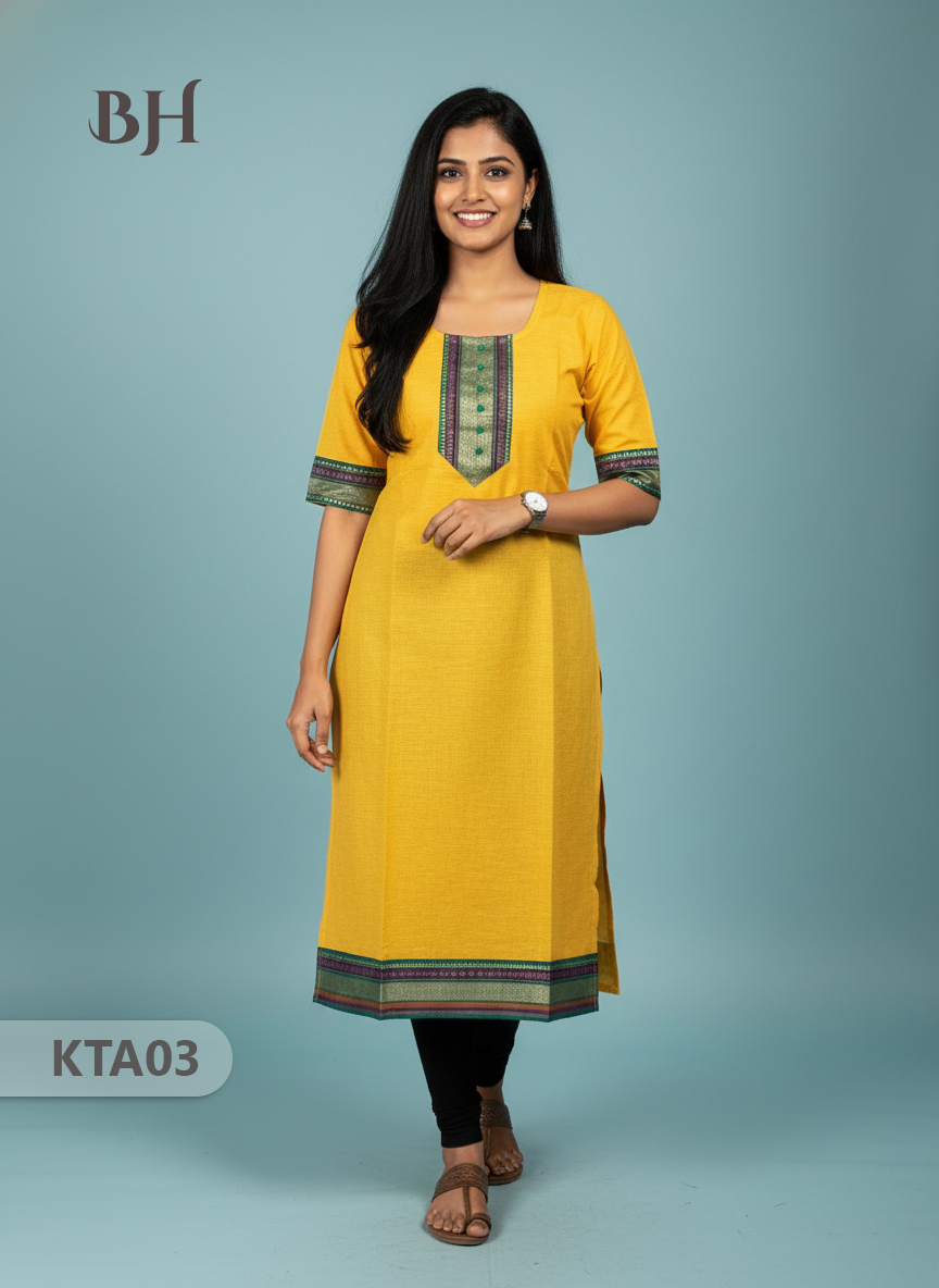 Handloom Straight Cut Top Yellow Color with No lining | Ethnic Cotton Wear