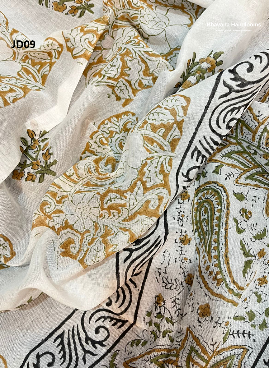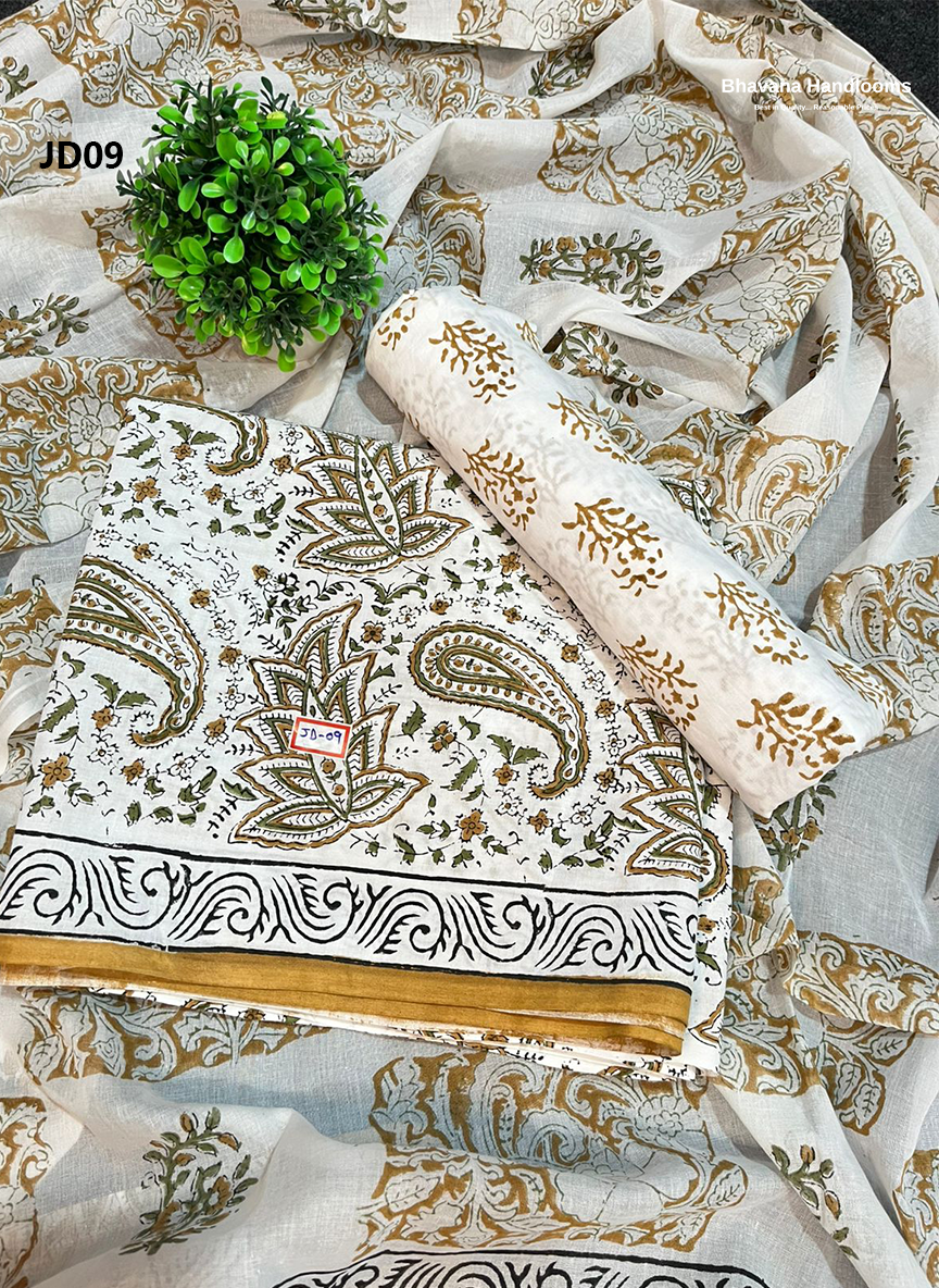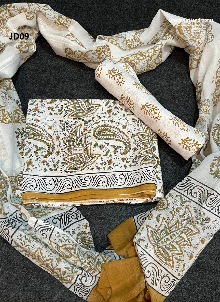 Jaipur Handblock Cotton Dress Material – White & Luxor Gold