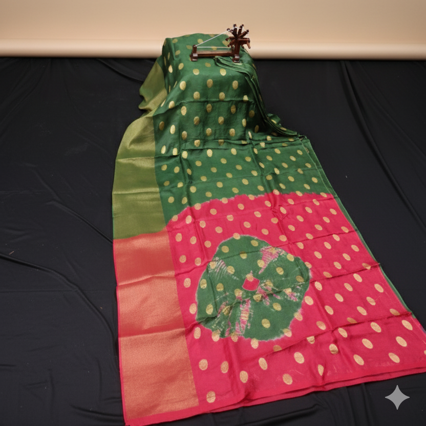 Jute Saree with Dollar Butis Green Colour