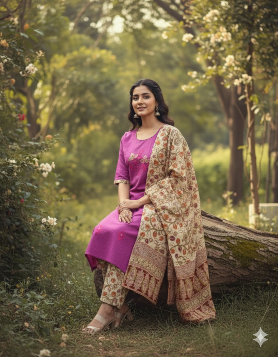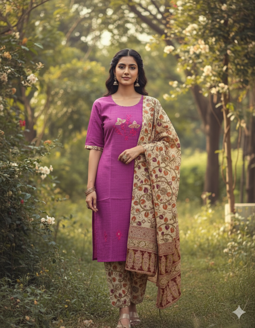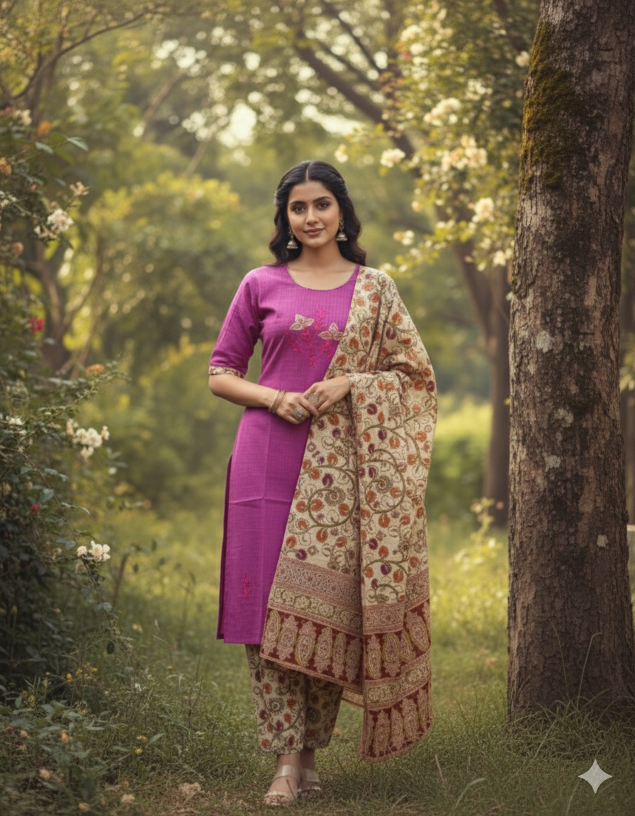 What you will get: 1 Top (Kurti) + 1 Bottom + 1 Dupatta — all stitched.