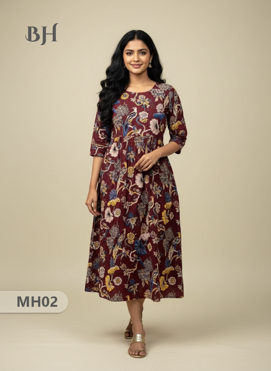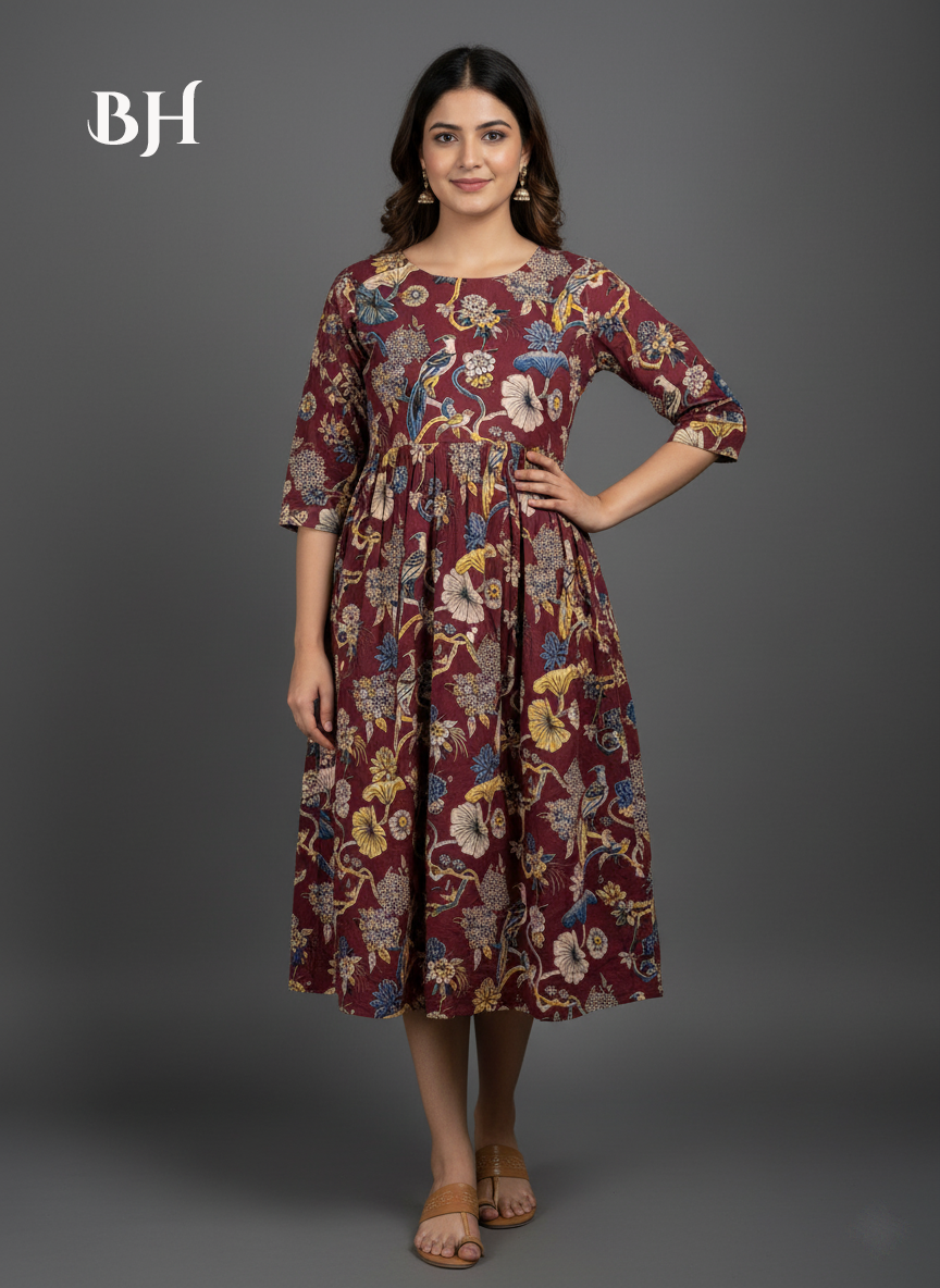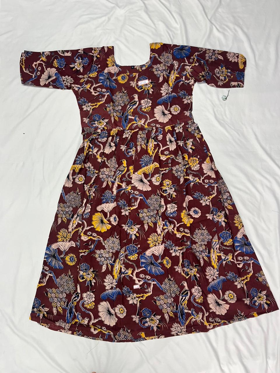 Kalamkari Design Frock – Dark Brown Colour | Handloom Ethnic Wear with Half Lining