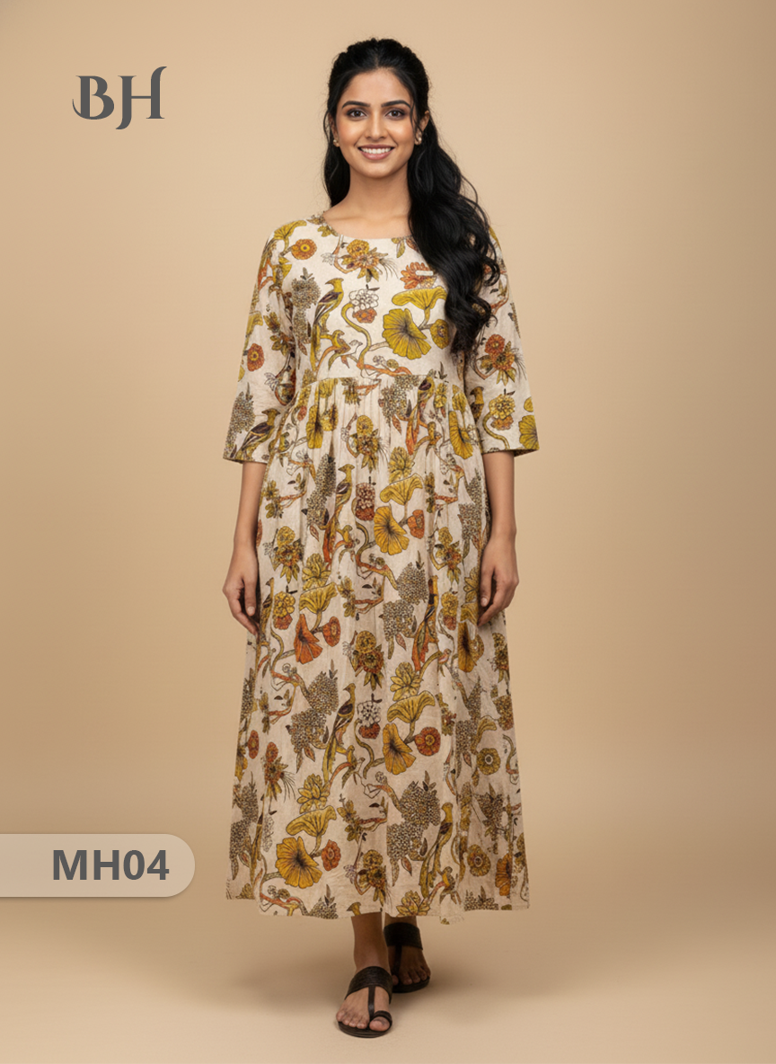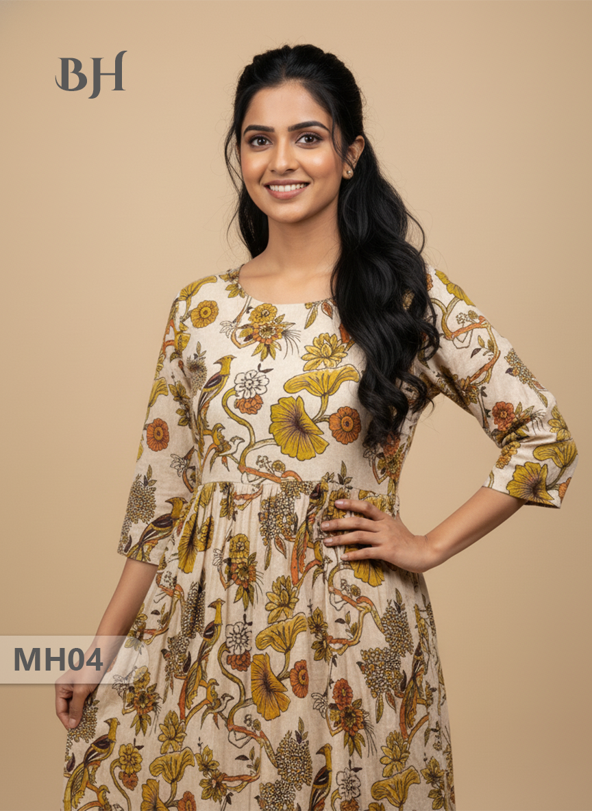 Kalamkari Design Frock – Skin Colour | Handloom Ethnic Wear with Half Lining