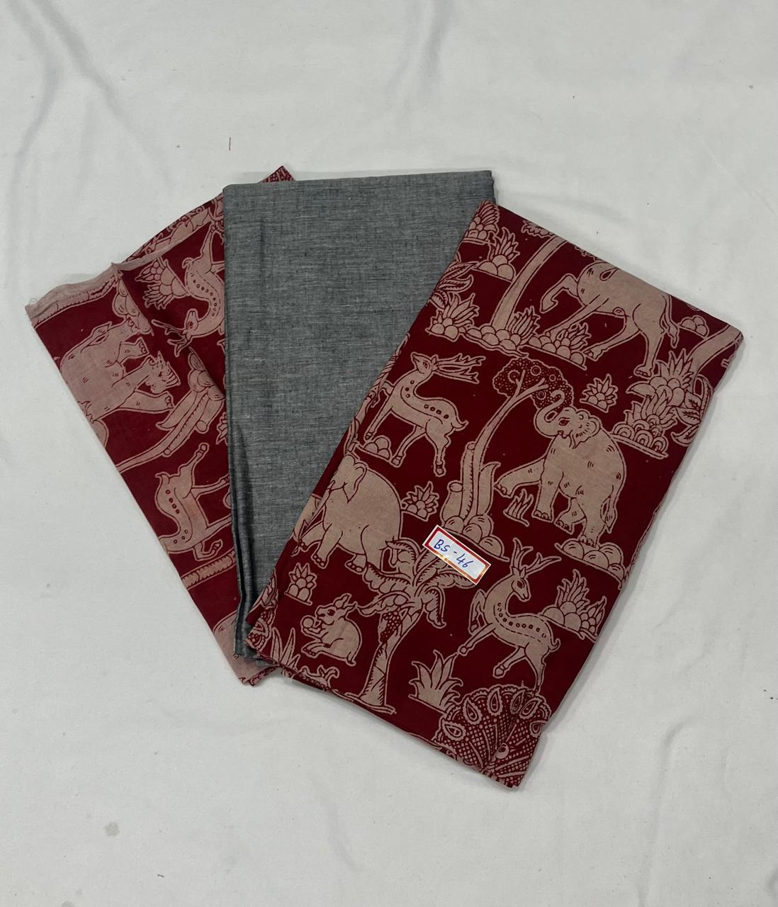 Keywords: Kalamkari Dress Material, Plain Cotton Top, Kalamkari Dupatta, Kalamkari Bottom, Bhavana Originals, Cotton Dress Material, Unstitched 3pc Cotton Suit Set, Traditional Handloom Fabric.