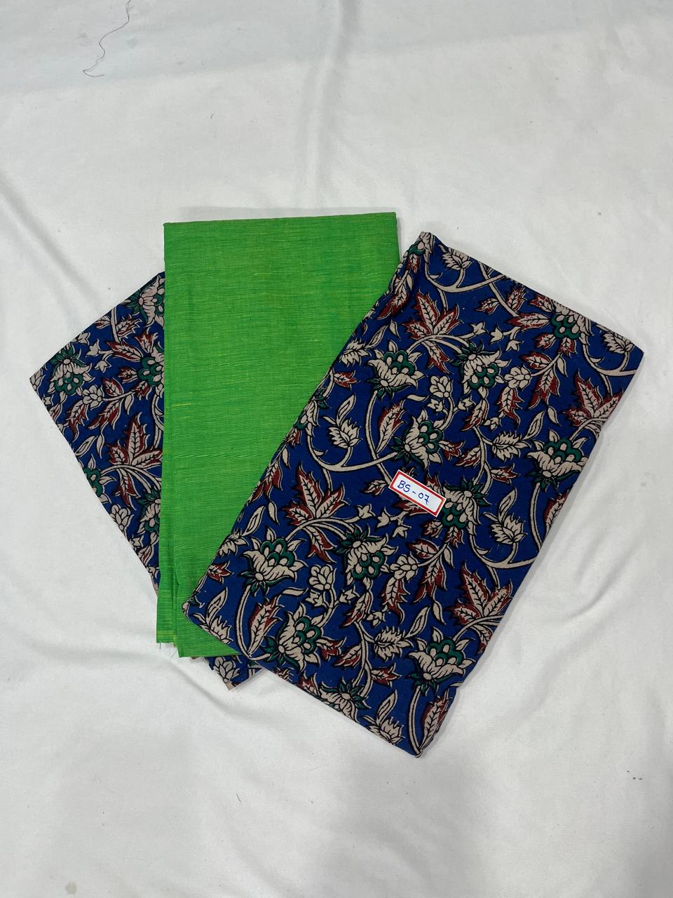 Kalamkari Dress Material – Plain Green Top & Bottom with Kalamkari Dupatta