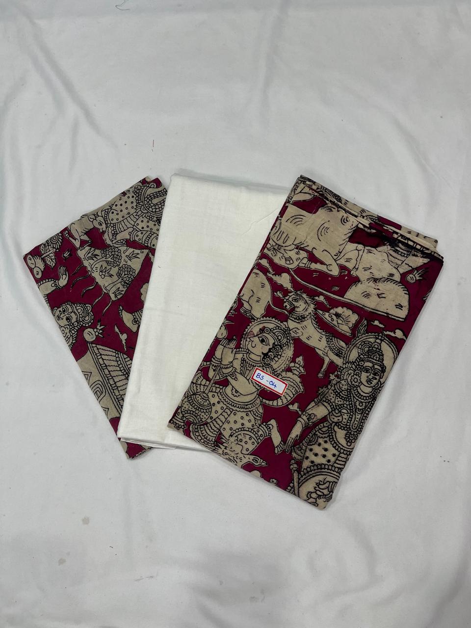 Kalamkari Dress Material – Plain White Top & Bottom with Kalamkari Dupatta