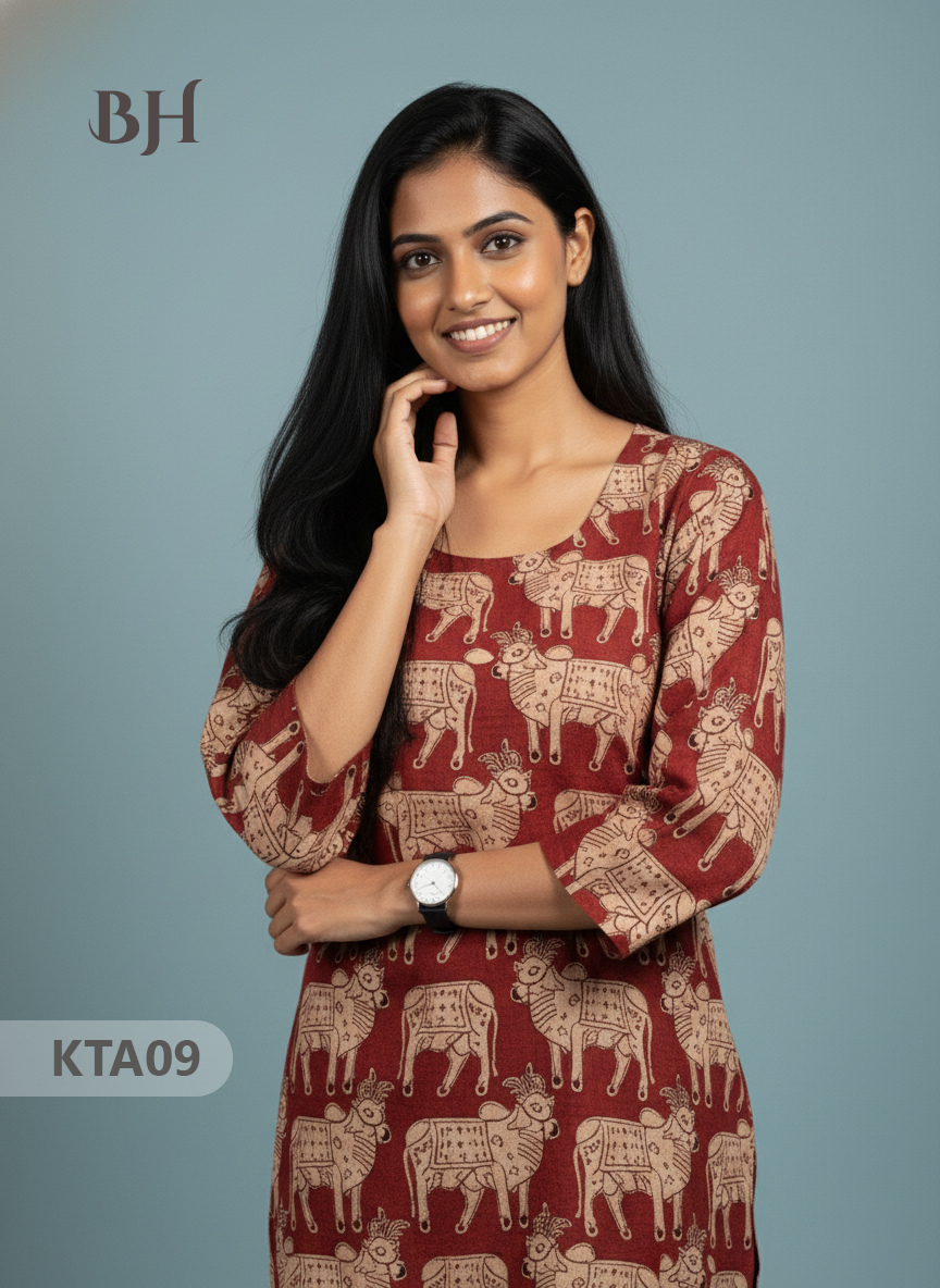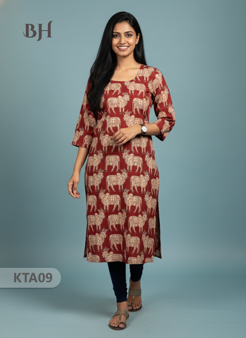 Kalamkari Straight Cut Top Red Color with Full Length Lining | Ethnic Cotton Wear