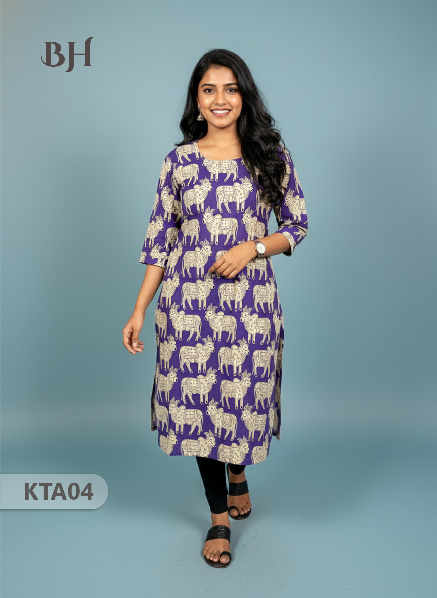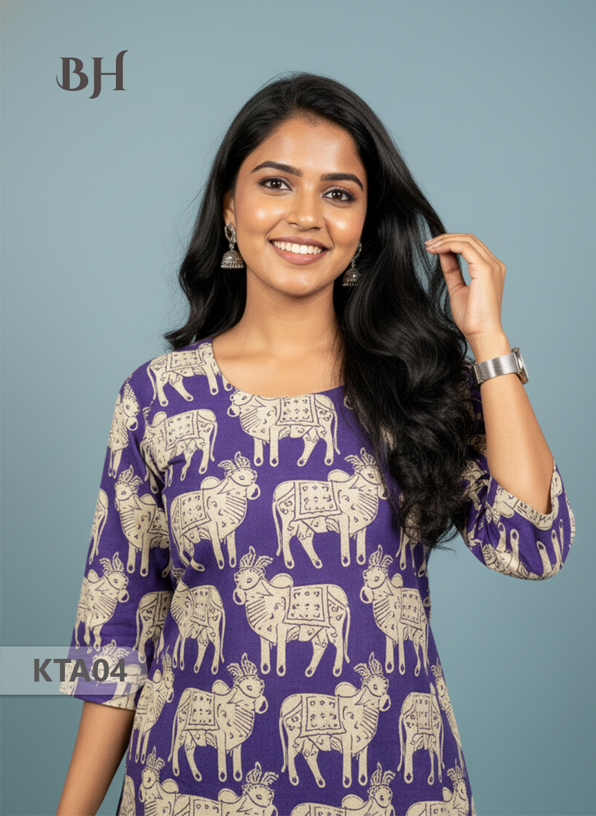 Kalamkari Straight Cut Top Violet Color with Full Length Lining | Ethnic Cotton Wear