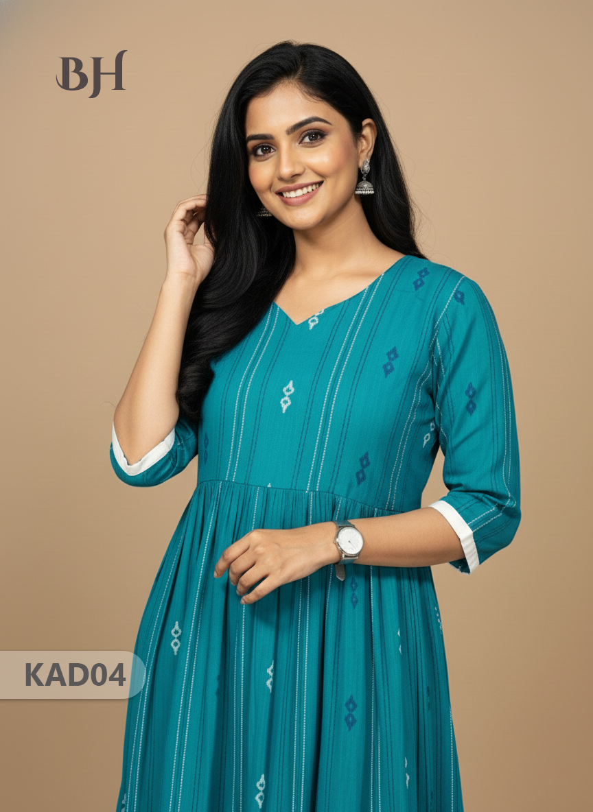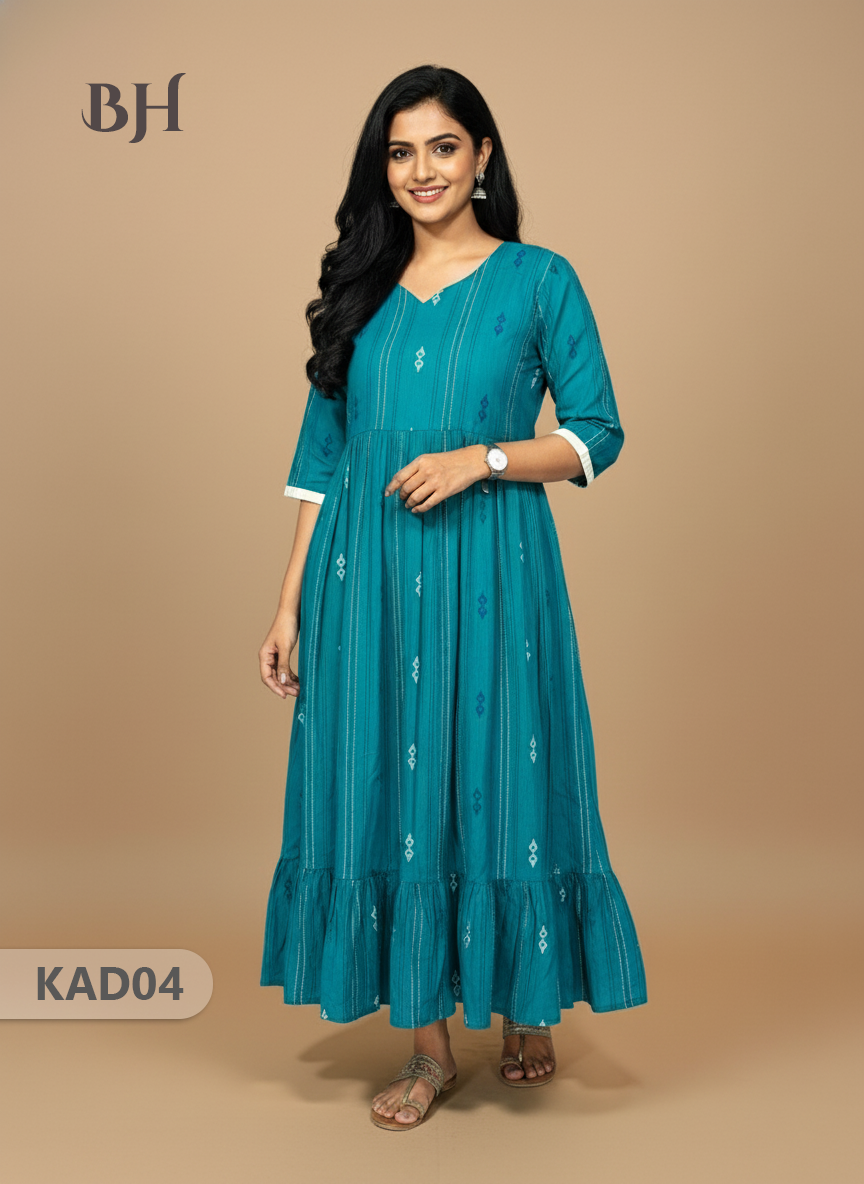 Khadi Cotton Frock Half Length with Lining – Teal Colour | Comfortable & Stylish Handloom Dress