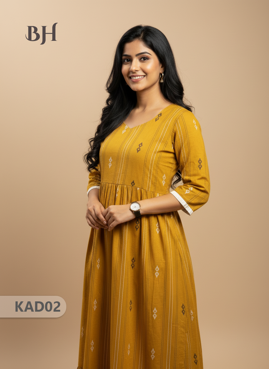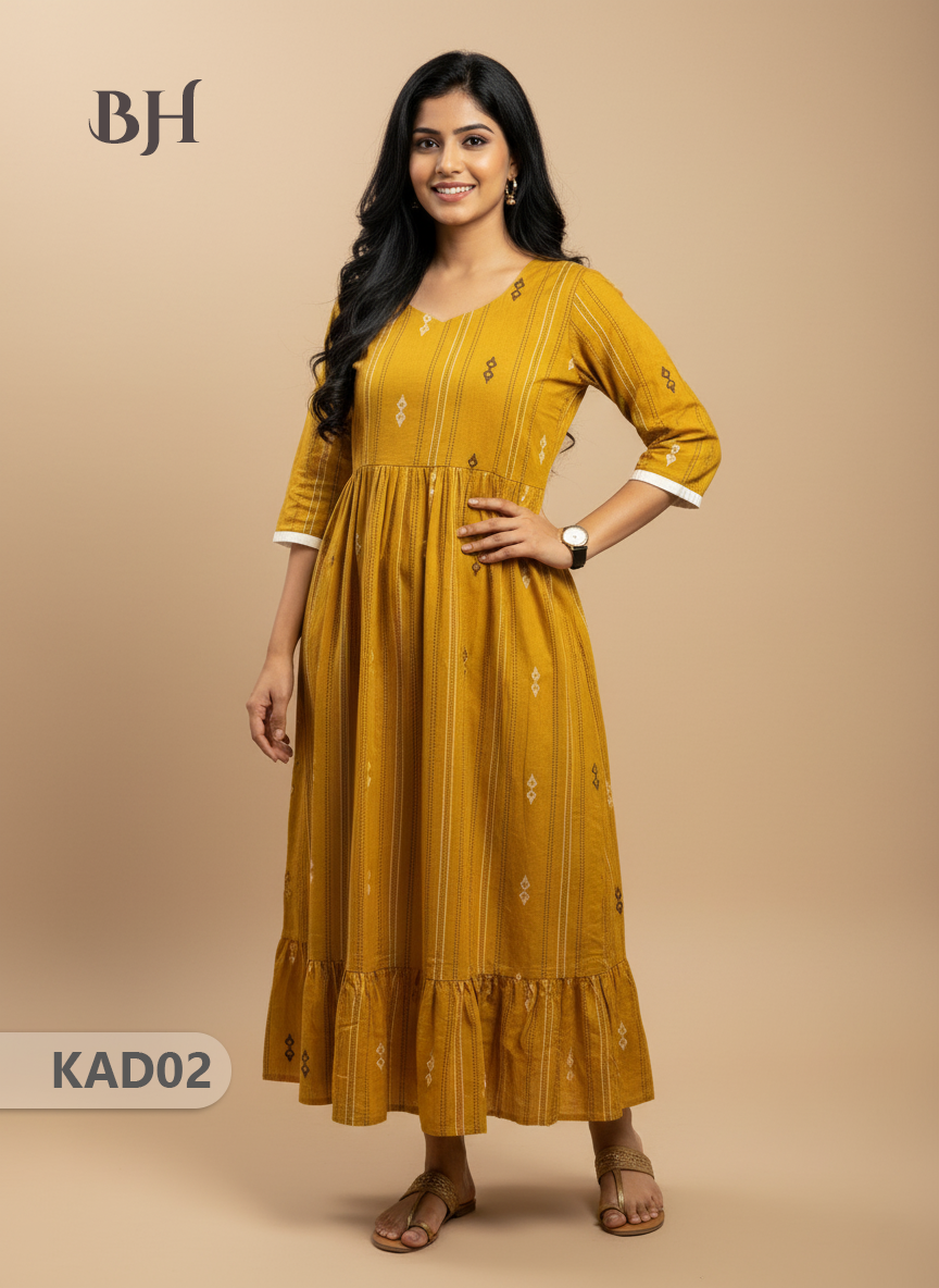 Khadi Cotton Frock Half Length with Lining – Yellow Colour | Comfortable & Stylish Handloom Dress