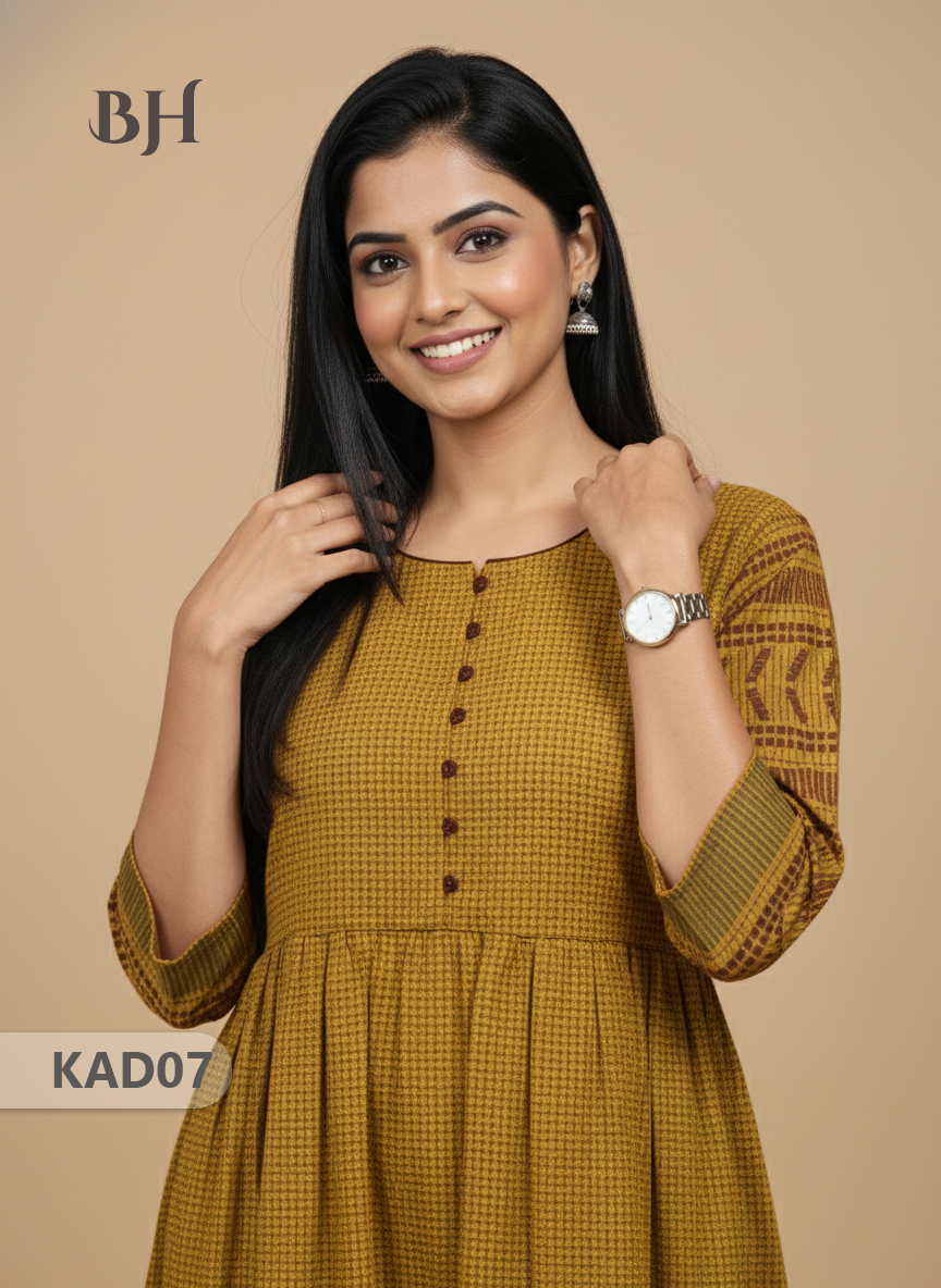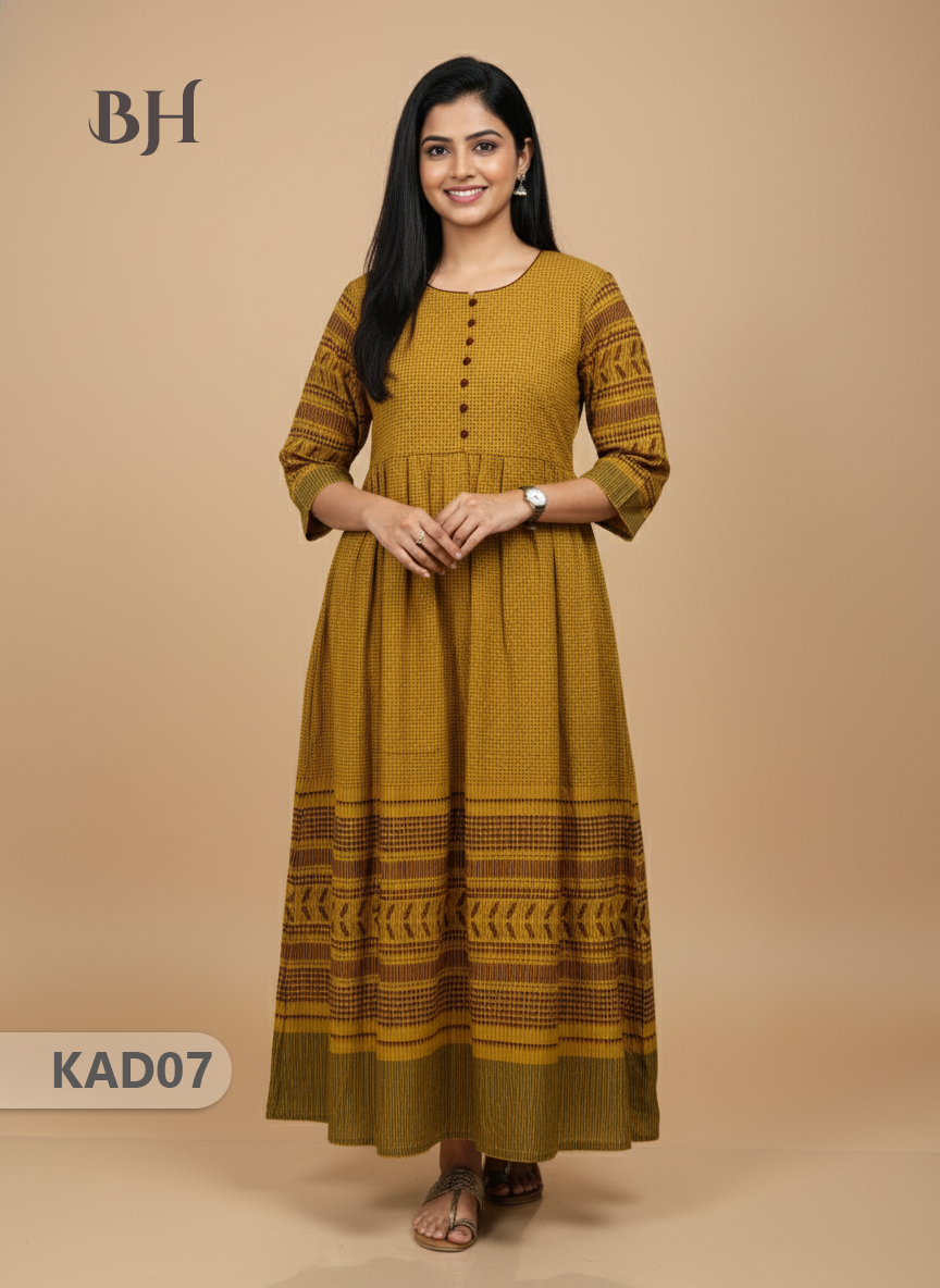 Khadi Cotton Frock Half Length with Lining – Yellow Colour | Comfortable & Stylish Handloom Dress