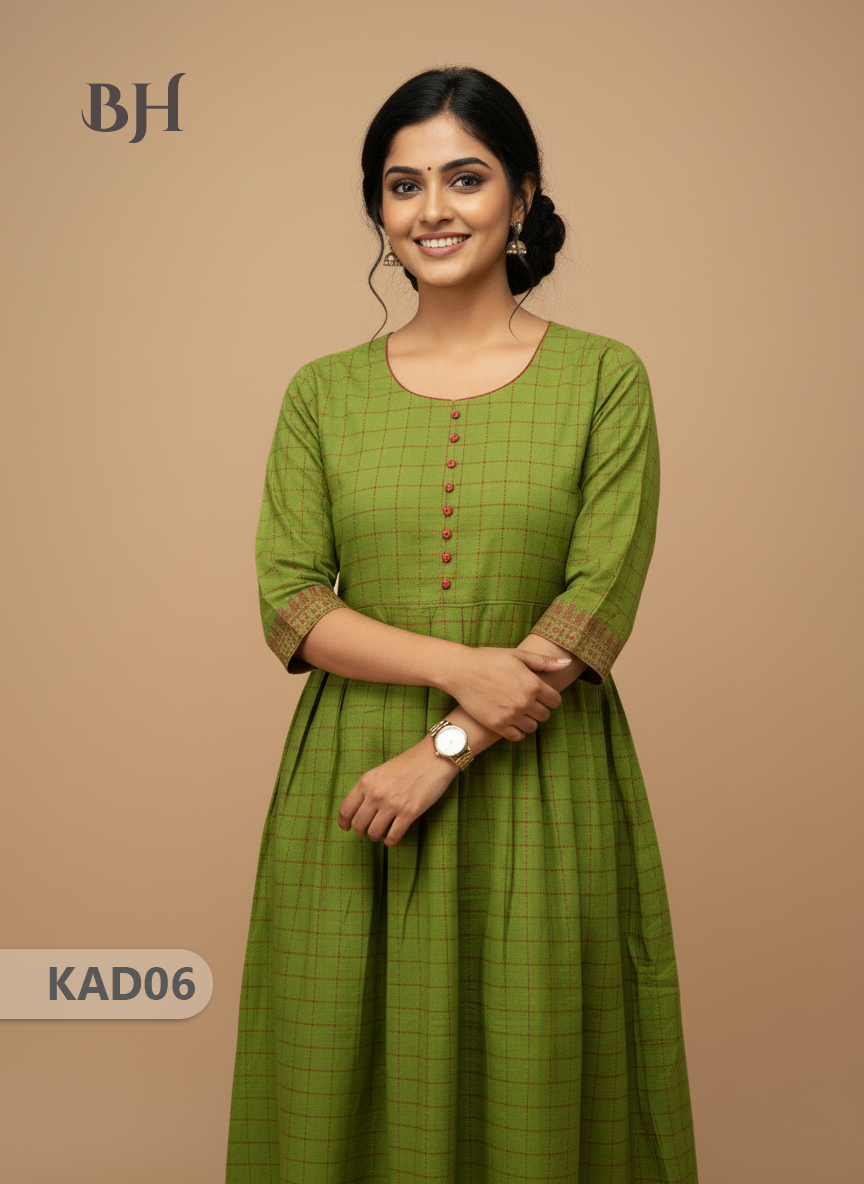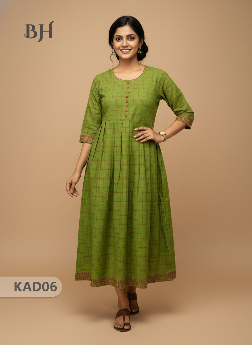 Khadi Cotton Frock Half Length with Lining – Green Colour | Comfortable & Stylish Handloom Dress