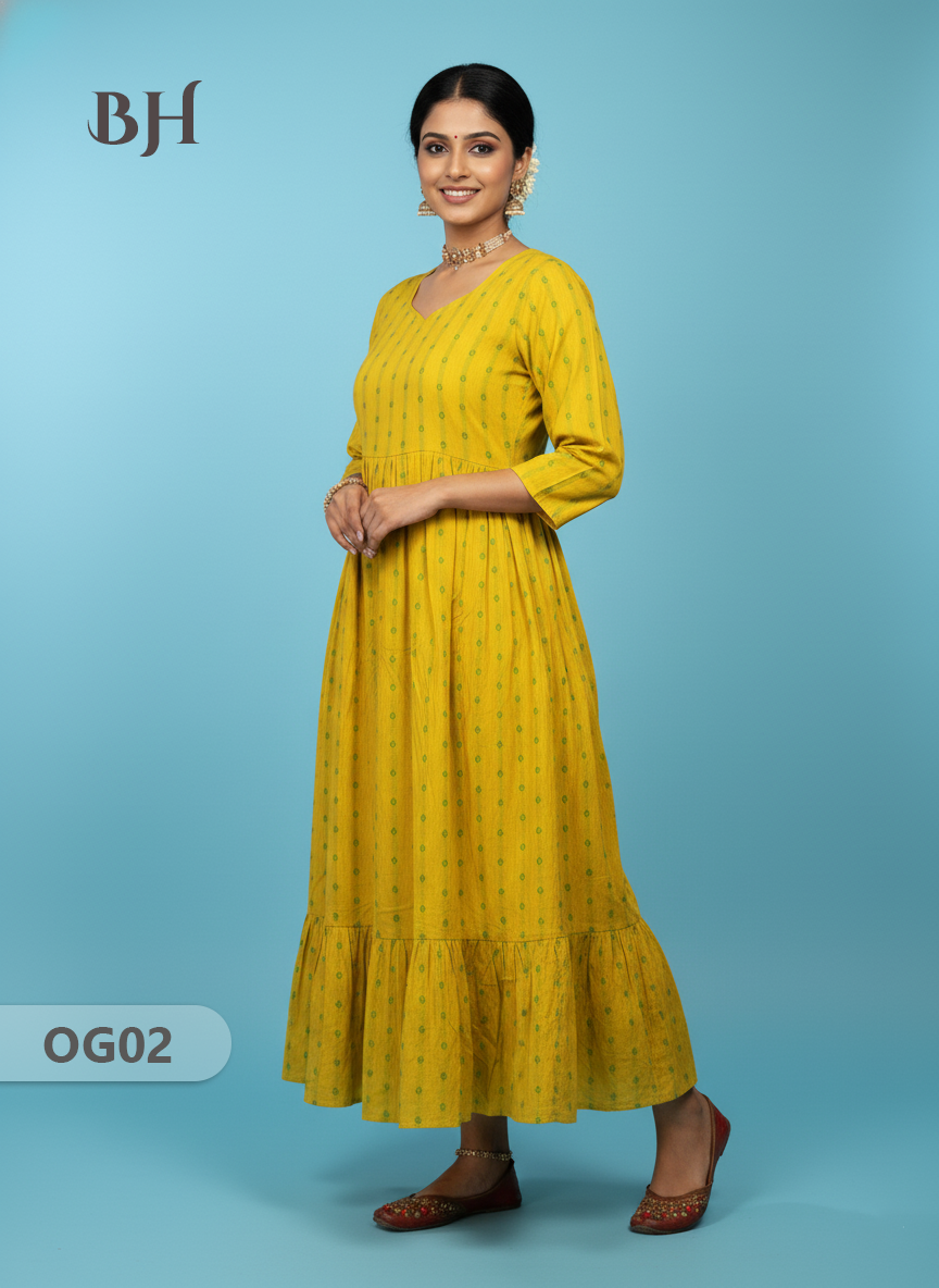 Khadi Handloom Cotton Frock for Women Yellow Colour – Traditional Handloom Dress