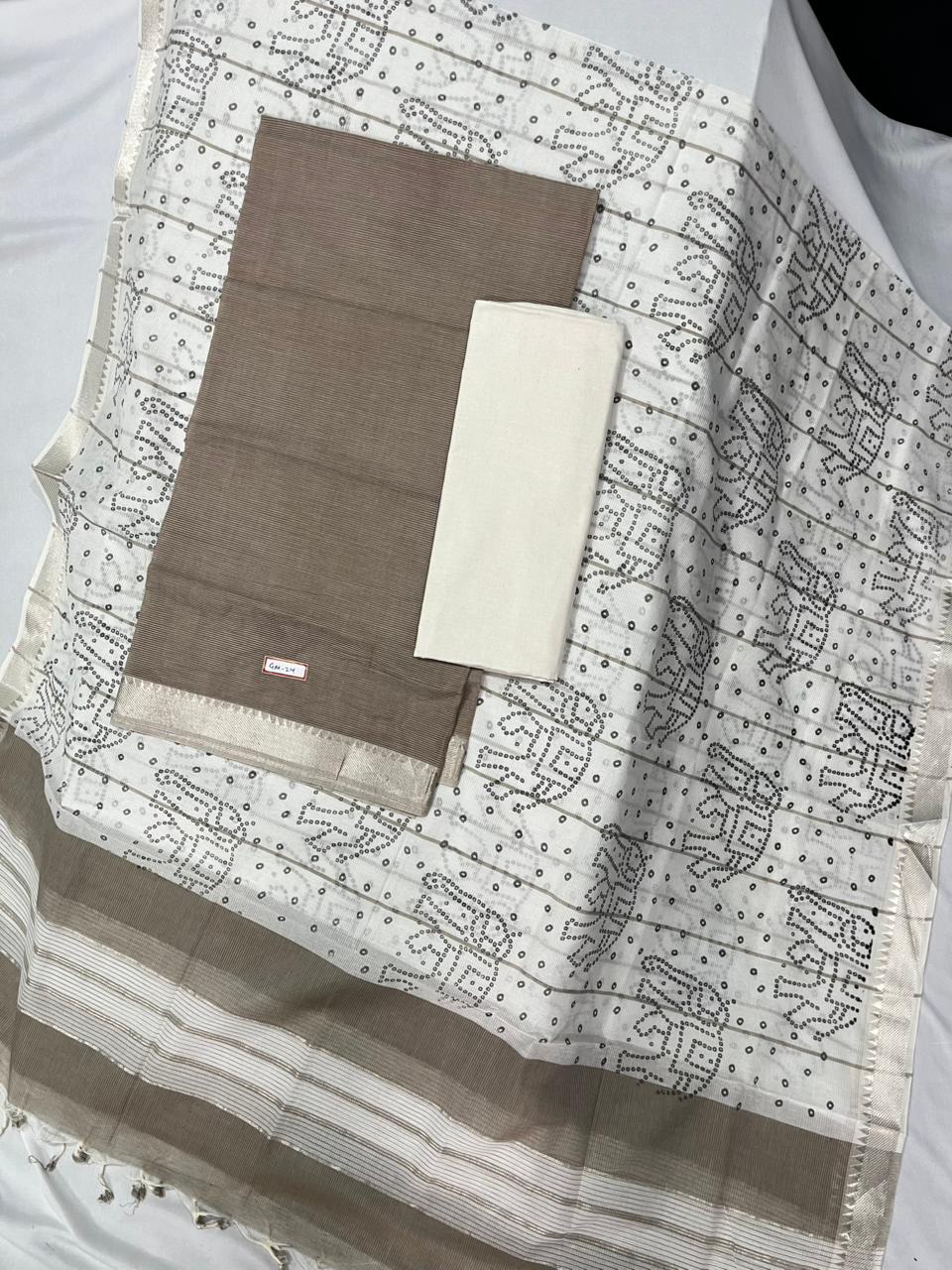 Mangalagiri Cotton Dress Material with White Chunni with Brownish Gray Colour